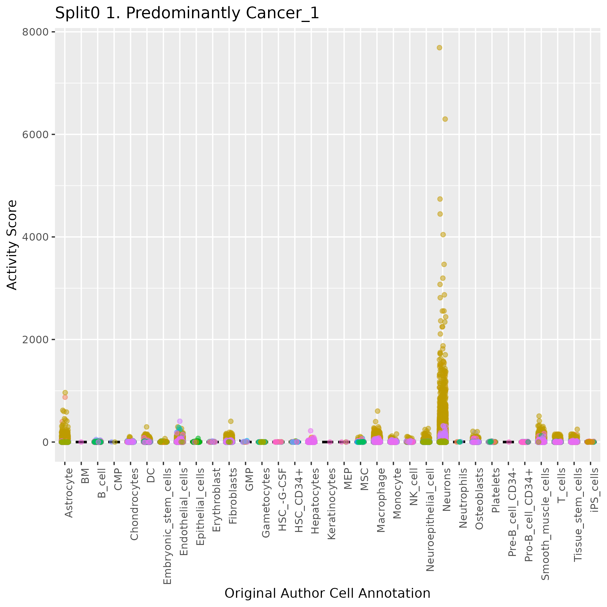 Normal Schwann cell precurors, but not Neuroblastoma Scps (Olsen) Based on their neuroblastoma data and stated on page 6 of the main text of Olsen et al. https://www.biorxiv.org/content/10.1101/2020.05.04.077057v1: Wilcoxon ranksum test P-value for gene set overrepresentation: 4.96e-01 Mean rank of genes in gene set: 10246 Rank on gene expression program of genes in gene set: