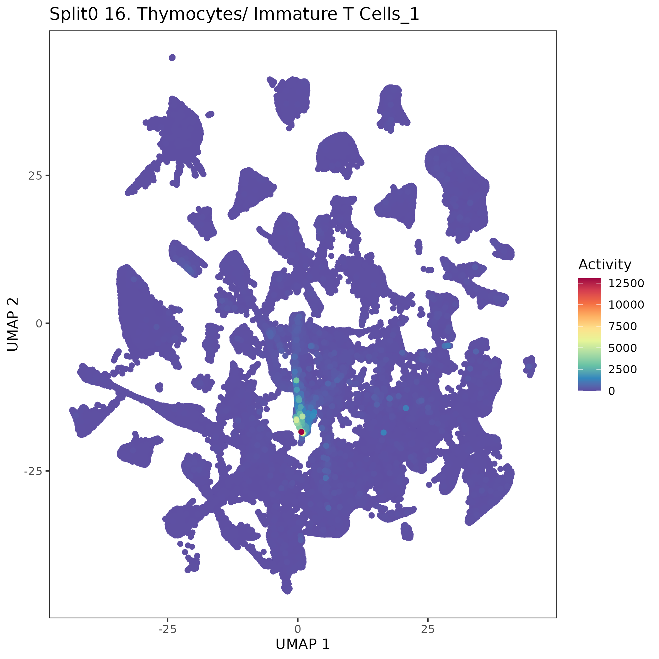 T cells: Treg(diff) (model markers) unconventional T lymphocyte subpopulation in the thymus which connects T cells and canonical regulatory T cells and is still differentiating: Wilcoxon ranksum test P-value for gene set overrepresentation: 9.36e-01 Mean rank of genes in gene set: 13485.5 Rank on gene expression program of genes in gene set: