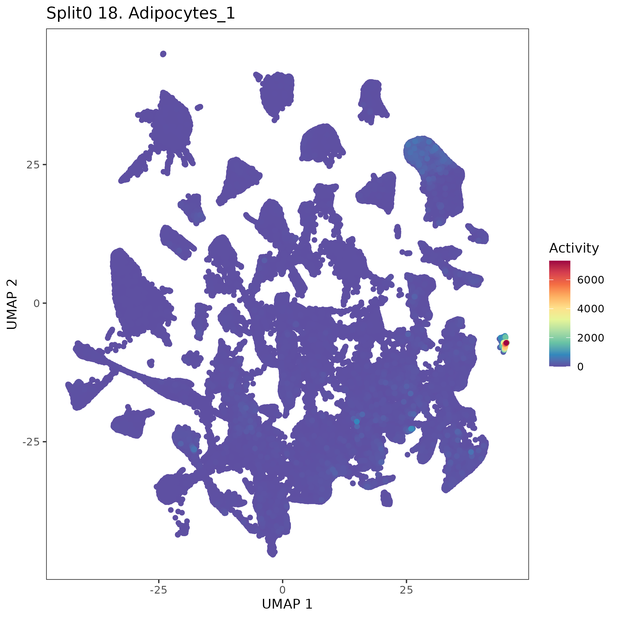 Hepatocytes (Jansky) Mentioned in the main text (Jansky et al, Nature Genetics (2021)), page 1, that ALB+ Hepatocytes were identified in their fetal adrenal glands, this is also highlighted in the UMAP plot on their Fig 1B. Additional genes also shown in their Extended data Figure 2D. The main text also speculated that these hepatocytes were probably derived from neighboring tissue, and hence artifactual, but there is no evidence presented for this.: Wilcoxon ranksum test P-value for gene set overrepresentation: 3.42e-01 Mean rank of genes in gene set: 8896 Rank on gene expression program of genes in gene set: