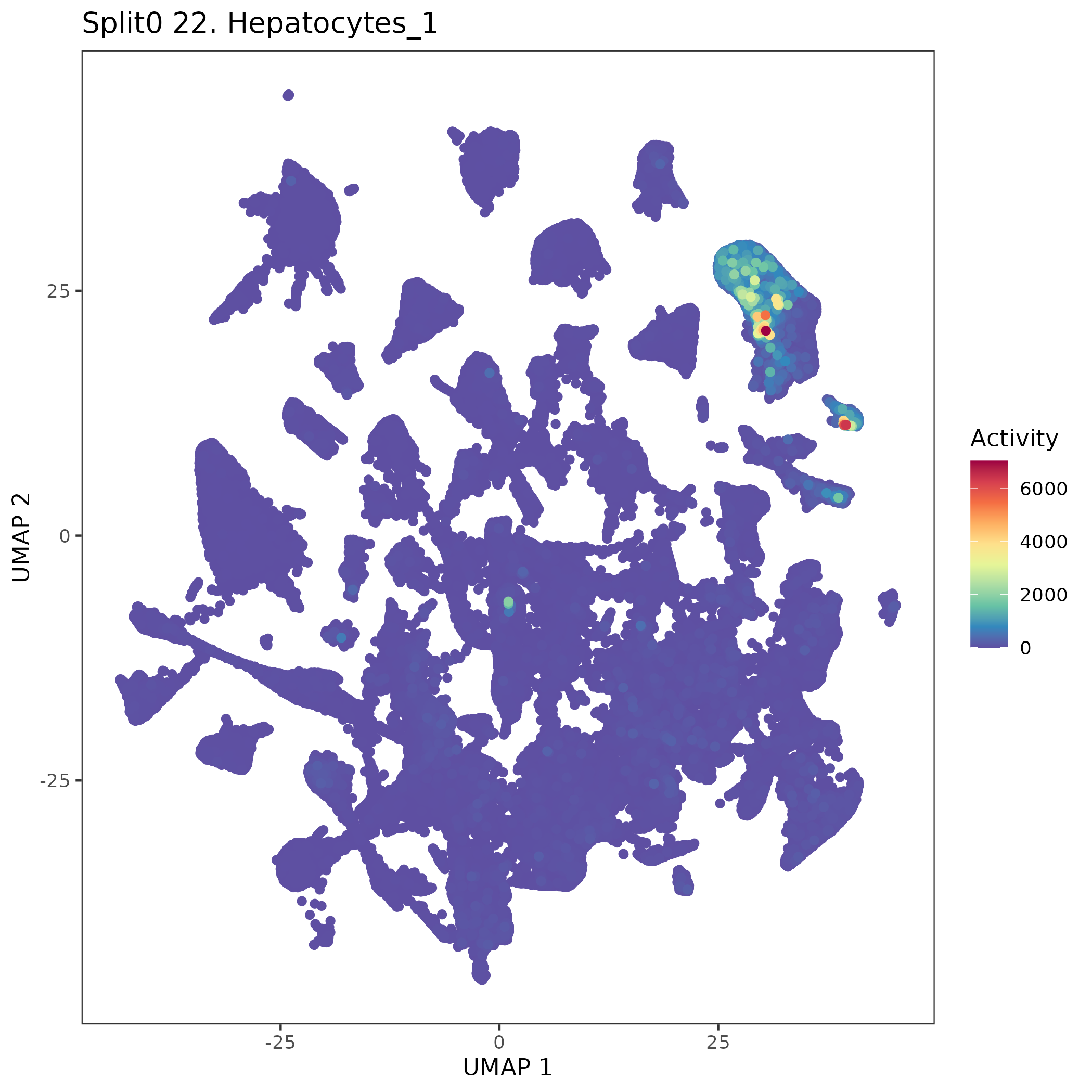 Hepatocytes (Jansky) Mentioned in the main text (Jansky et al, Nature Genetics (2021)), page 1, that ALB+ Hepatocytes were identified in their fetal adrenal glands, this is also highlighted in the UMAP plot on their Fig 1B. Additional genes also shown in their Extended data Figure 2D. The main text also speculated that these hepatocytes were probably derived from neighboring tissue, and hence artifactual, but there is no evidence presented for this.: Wilcoxon ranksum test P-value for gene set overrepresentation: 5.68e-01 Mean rank of genes in gene set: 10877.67 Rank on gene expression program of genes in gene set: