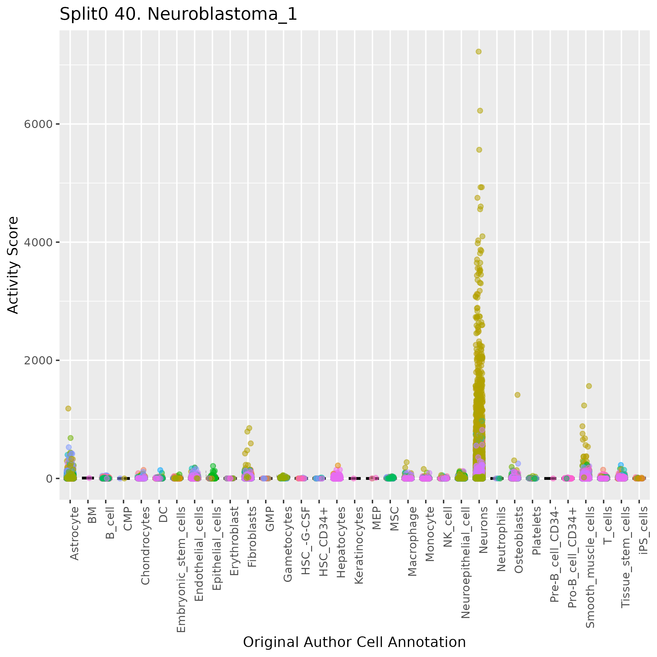 Normal Schwann cell precurors, but not Neuroblastoma Scps (Olsen) Based on their neuroblastoma data and stated on page 6 of the main text of Olsen et al. https://www.biorxiv.org/content/10.1101/2020.05.04.077057v1: Wilcoxon ranksum test P-value for gene set overrepresentation: 4.08e-01 Mean rank of genes in gene set: 9320.5 Rank on gene expression program of genes in gene set: