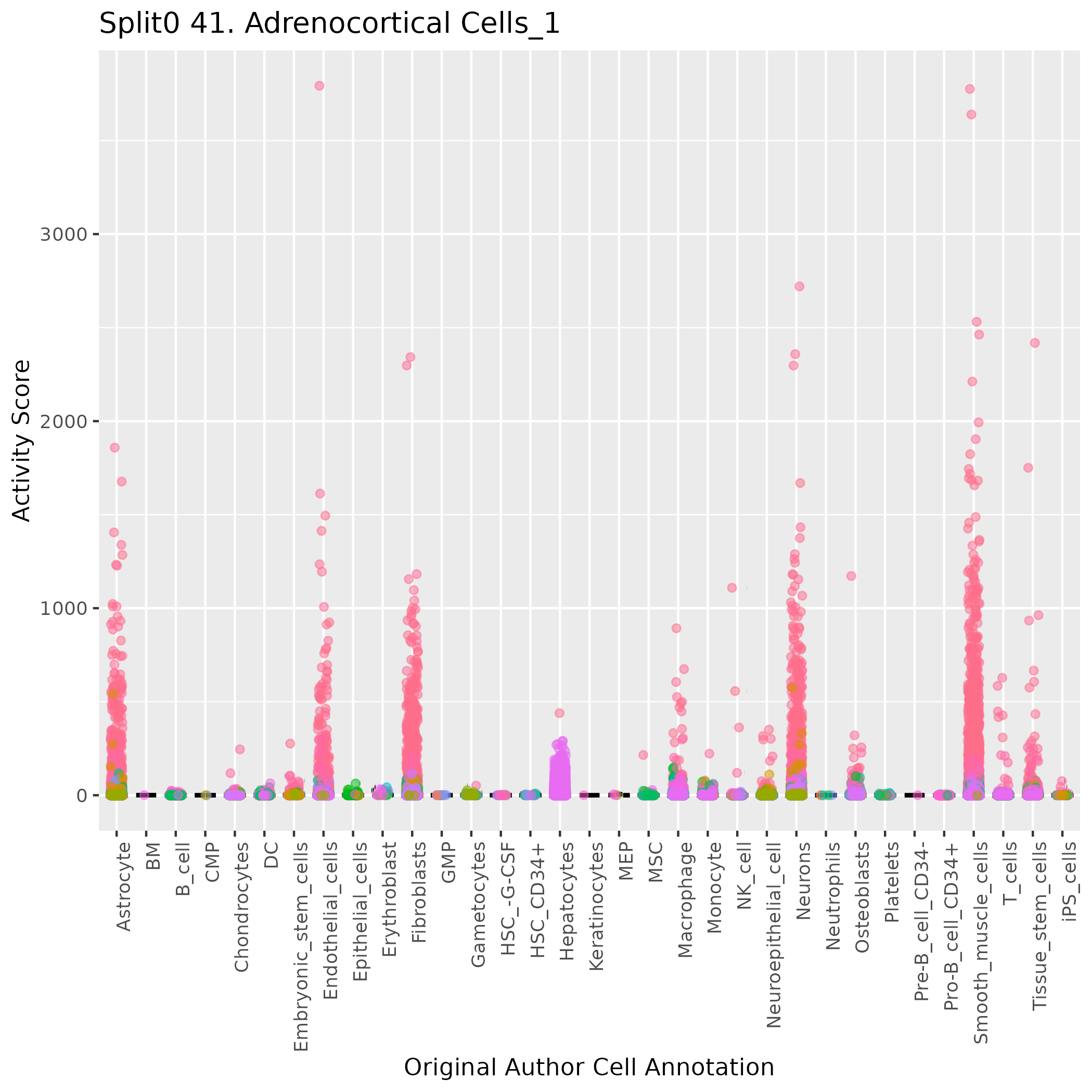 Hepatocytes (Jansky) Mentioned in the main text (Jansky et al, Nature Genetics (2021)), page 1, that ALB+ Hepatocytes were identified in their fetal adrenal glands, this is also highlighted in the UMAP plot on their Fig 1B. Additional genes also shown in their Extended data Figure 2D. The main text also speculated that these hepatocytes were probably derived from neighboring tissue, and hence artifactual, but there is no evidence presented for this.: Wilcoxon ranksum test P-value for gene set overrepresentation: 8.38e-01 Mean rank of genes in gene set: 13672 Rank on gene expression program of genes in gene set: