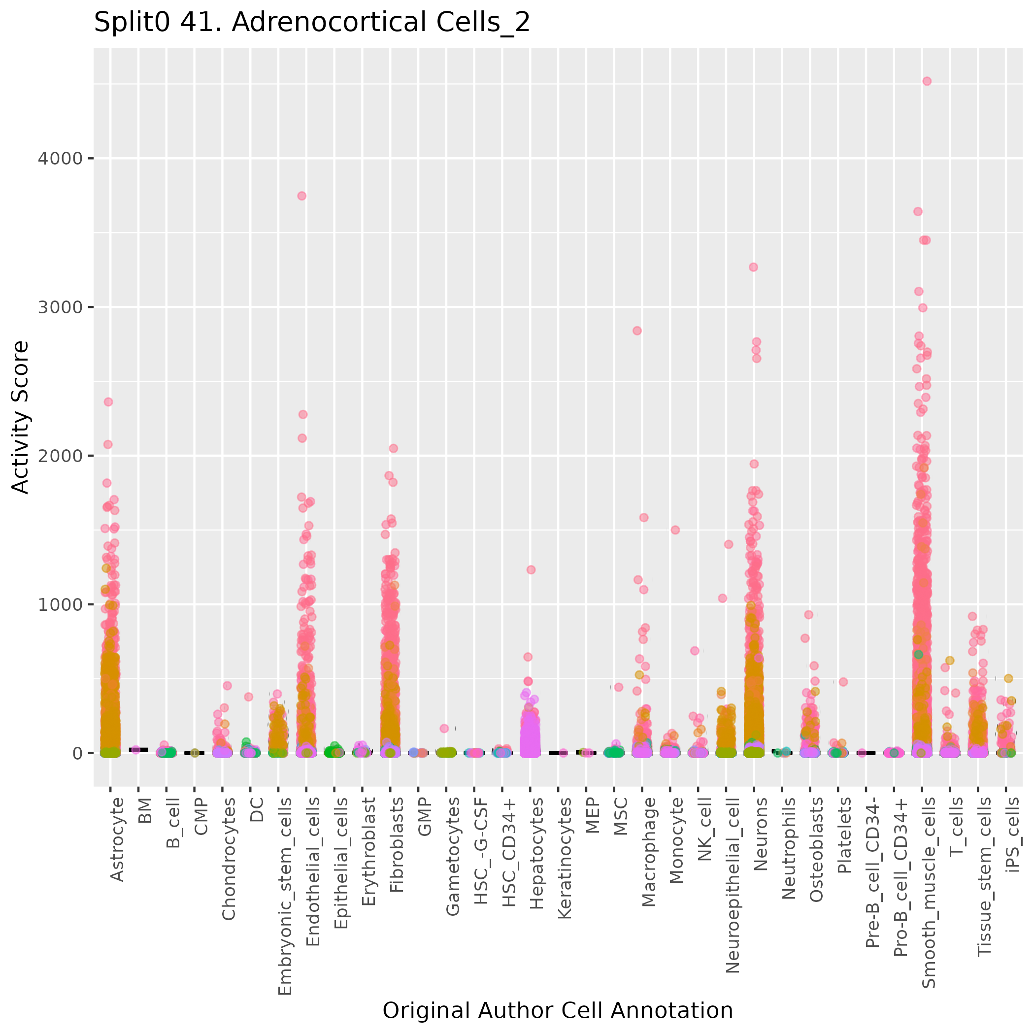 Symphathoadrenal cells (Yuan) Obtained from Fig. 1 of Yuan et al. https://www.biorxiv.org/content/10.1101/2020.05.15.097469v1: Wilcoxon ranksum test P-value for gene set overrepresentation: 9.79e-01 Mean rank of genes in gene set: 16364.5 Rank on gene expression program of genes in gene set:
