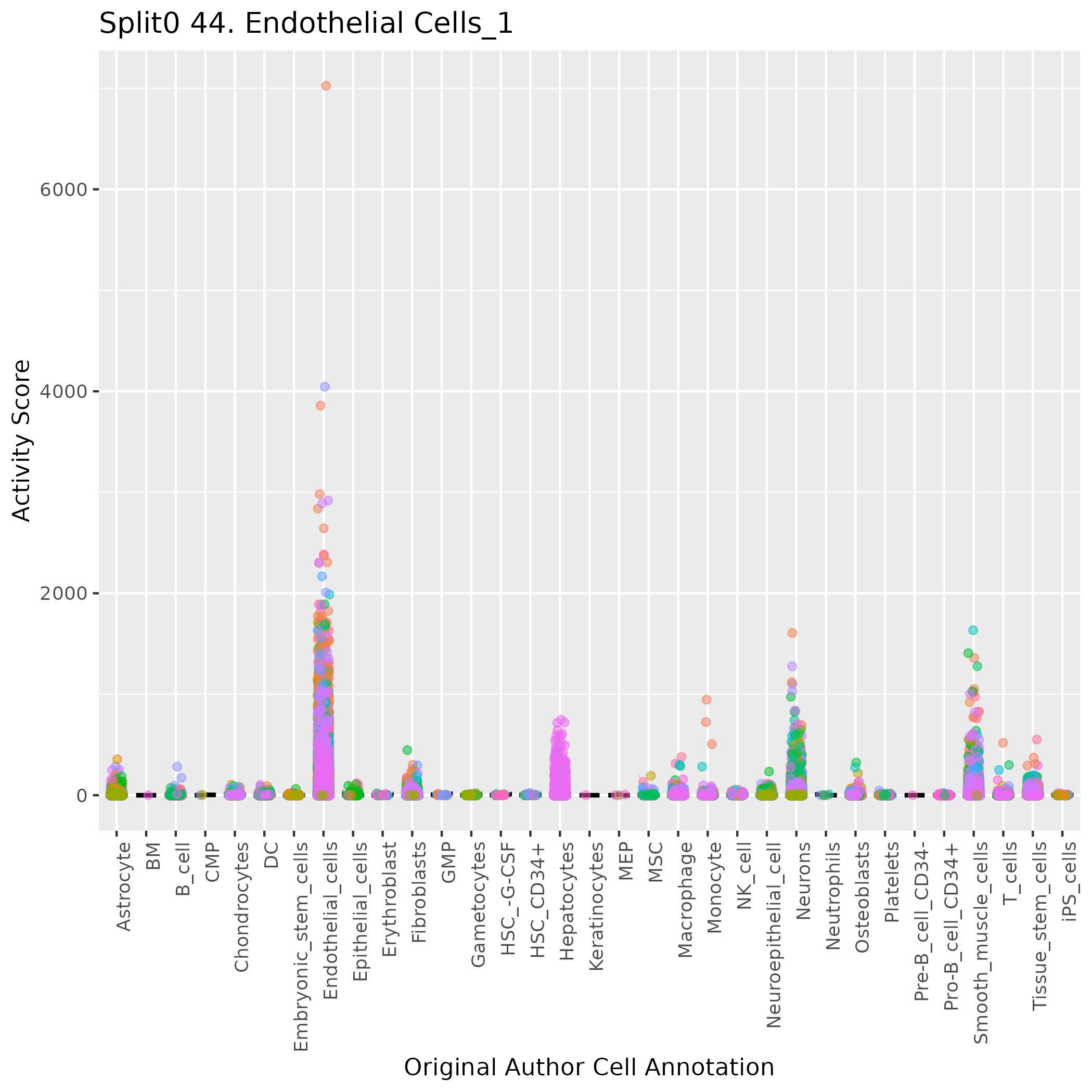 Epithelial cells: Epithelial cells (curated markers) highly specialised cells which are located in the outer layer of stroma and form the cellular components of the epithelium: Wilcoxon ranksum test P-value for gene set overrepresentation: 8.38e-01 Mean rank of genes in gene set: 13682 Rank on gene expression program of genes in gene set: