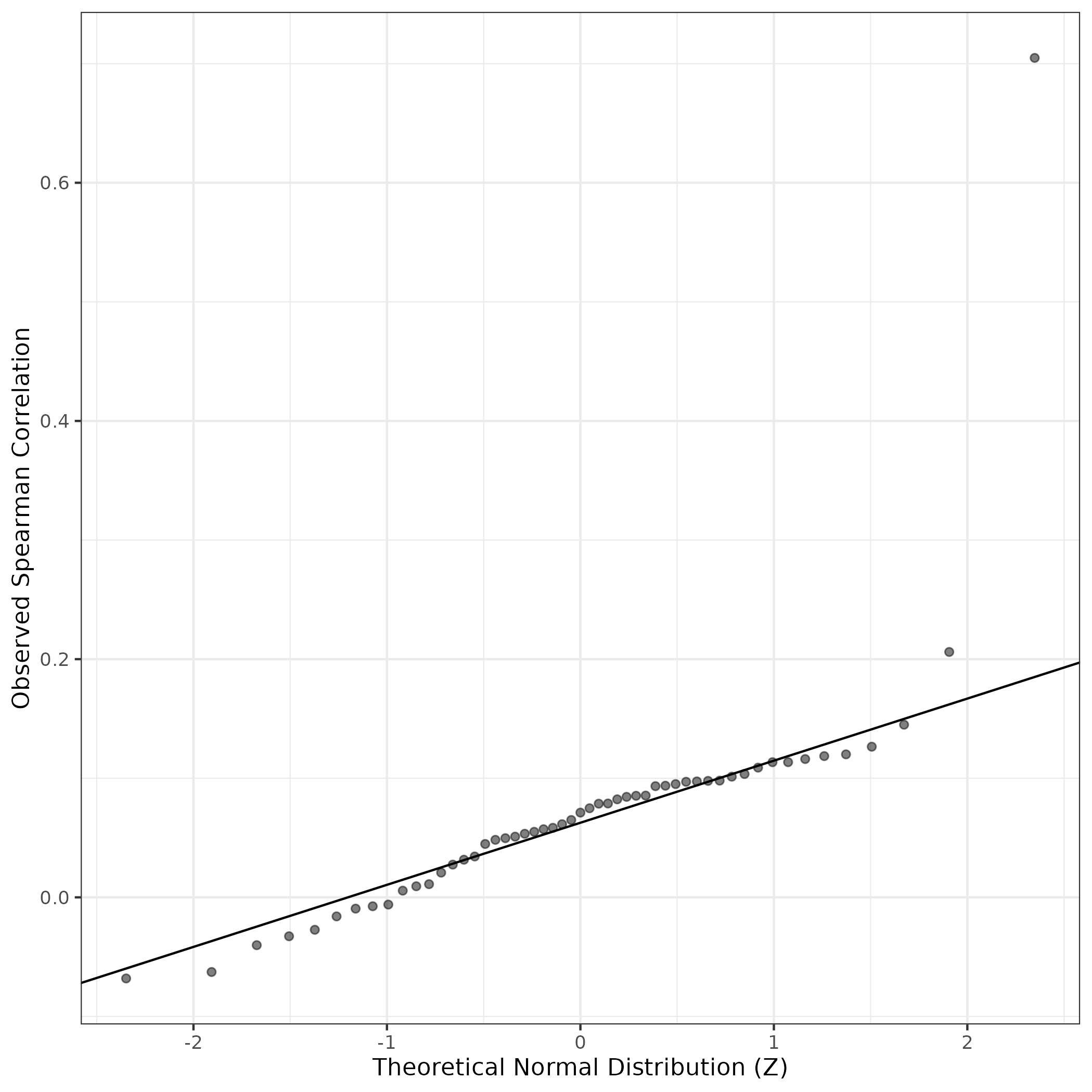 QQ-plot of gene loadings, averaged over both independent splits of the data