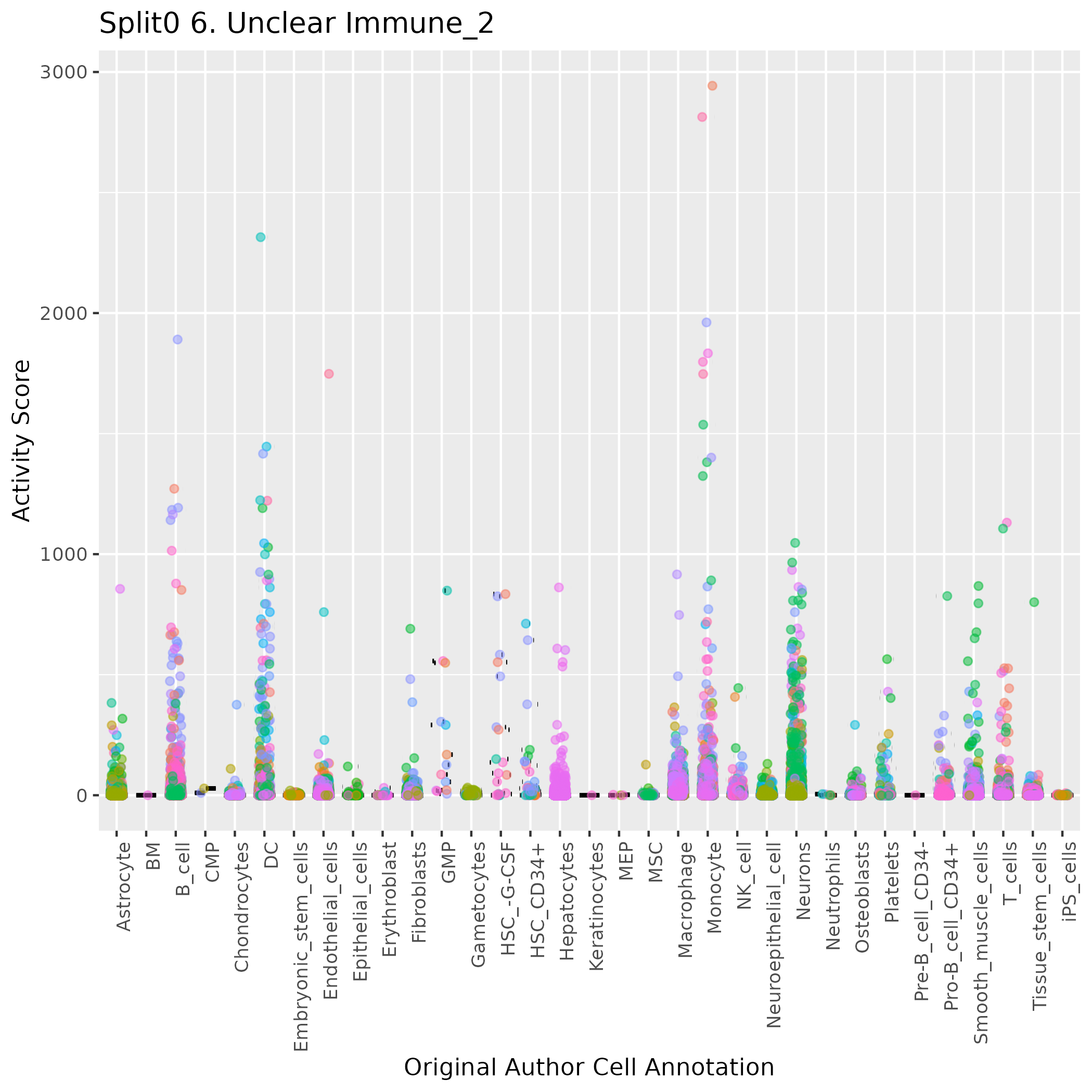 Immune cells (Jansky) Mentioned in the main text (Jansky et al, Nature Genetics (2021)), page 1, that PTPRC+ Immune cells were identified in their fetal adrenal glands, this is also highlighted in the UMAP plot on their Fig 1B. Additional genes also shown in their Extended data Figure 2D.: Wilcoxon ranksum test P-value for gene set overrepresentation: 6.82e-01 Mean rank of genes in gene set: 11915 Rank on gene expression program of genes in gene set: