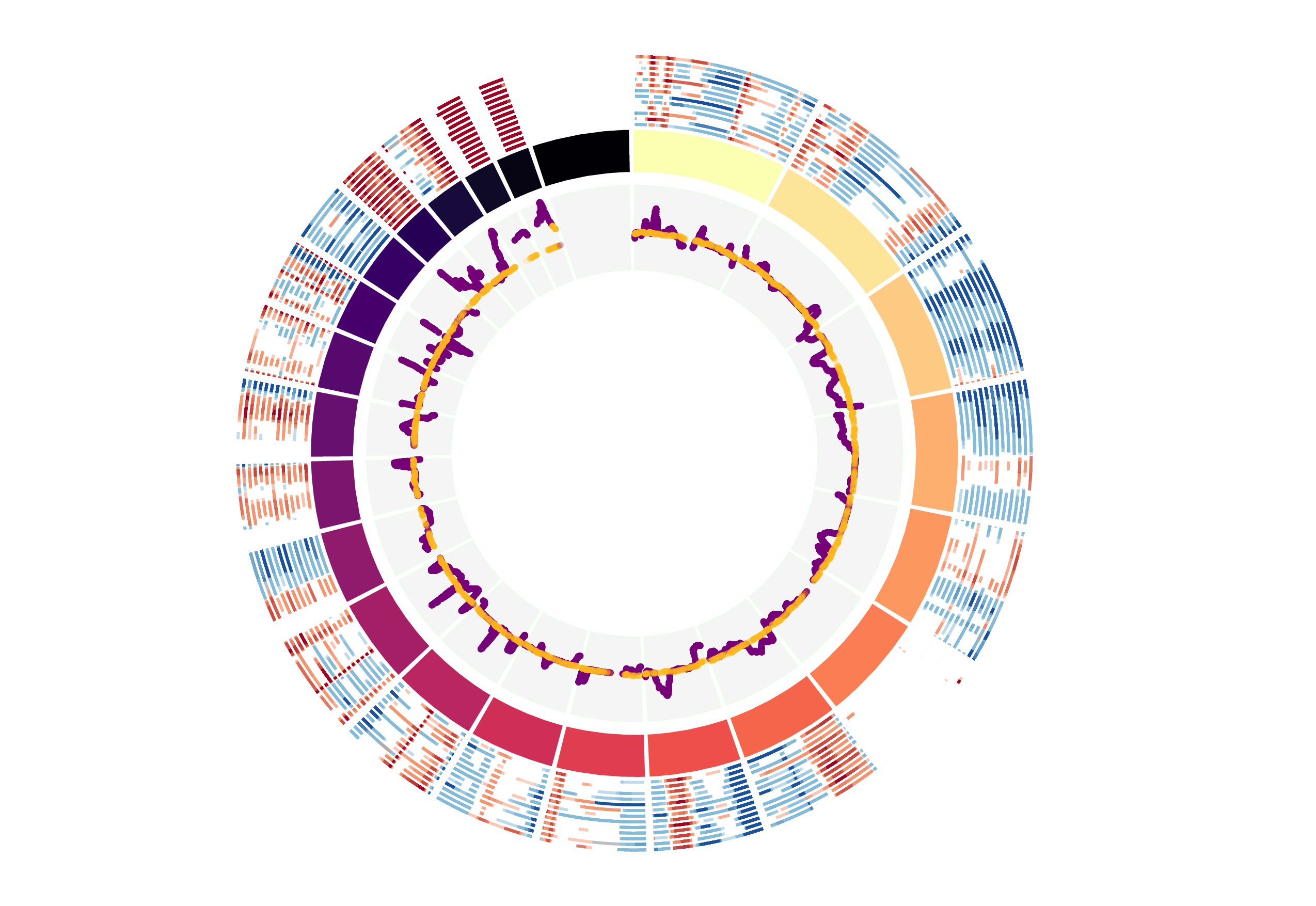 Outer tracks are putative CNV regions (gains = red, losses = blue) for each patient