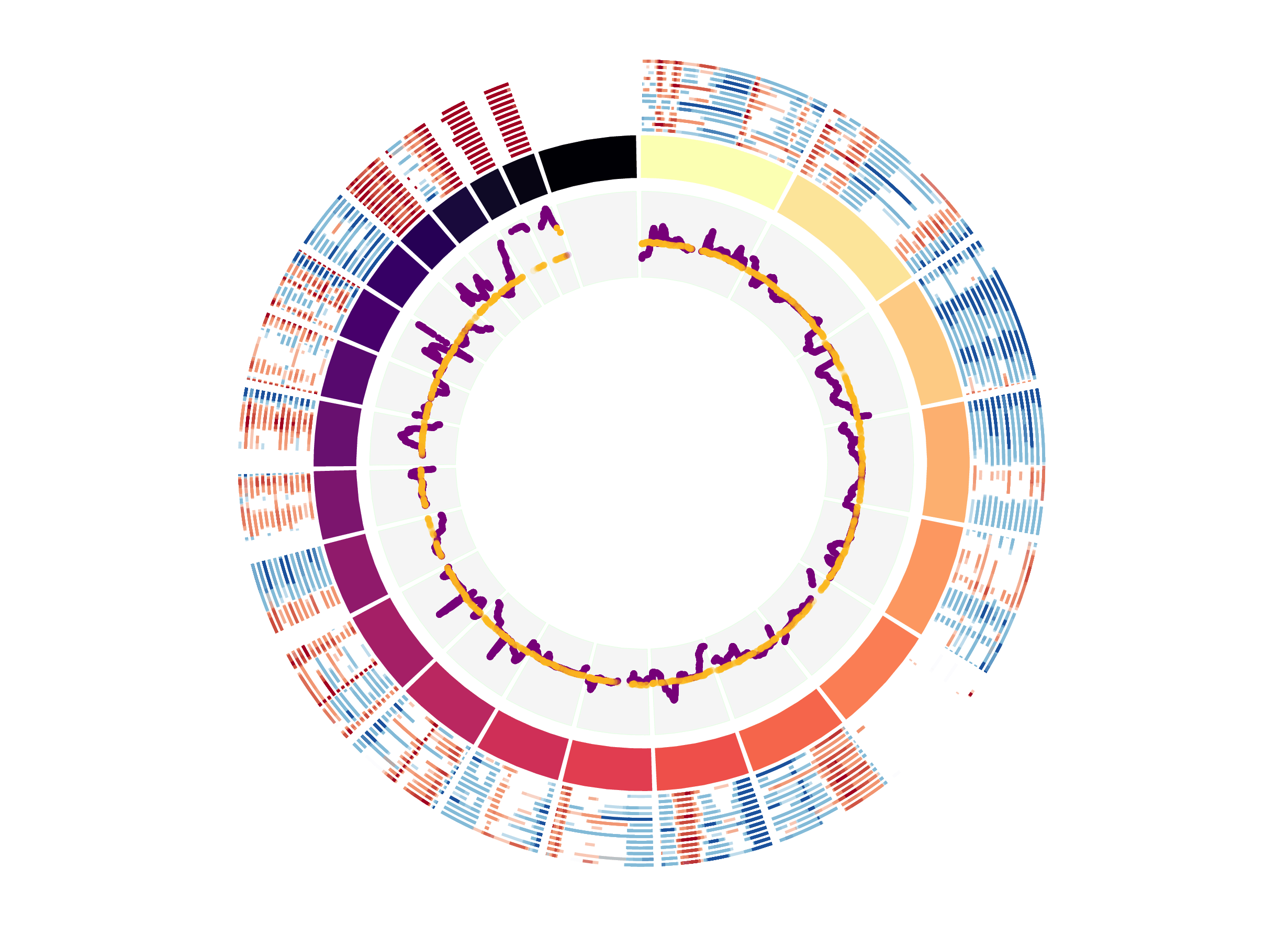 Outer tracks are putative CNV regions (gains = red, losses = blue) for each patient