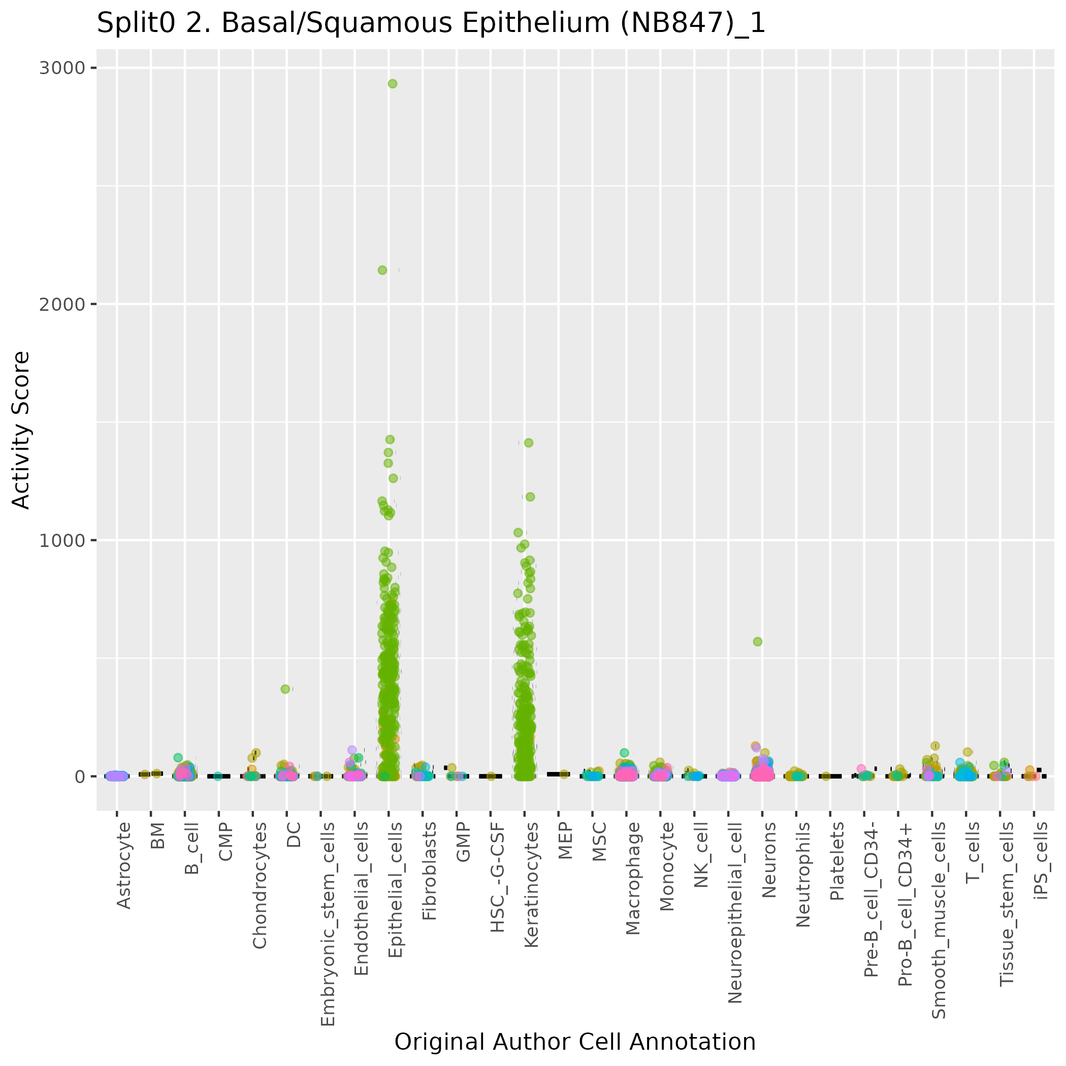B cells: Transitional B cells (model markers) immature B cell precursors in the bone marrow which connect Pre-B cells with mature naive B cells and are subject to the process of B cell selection: Wilcoxon ranksum test P-value for gene set overrepresentation: 9.51e-01 Mean rank of genes in gene set: 20500 Rank on gene expression program of genes in gene set: