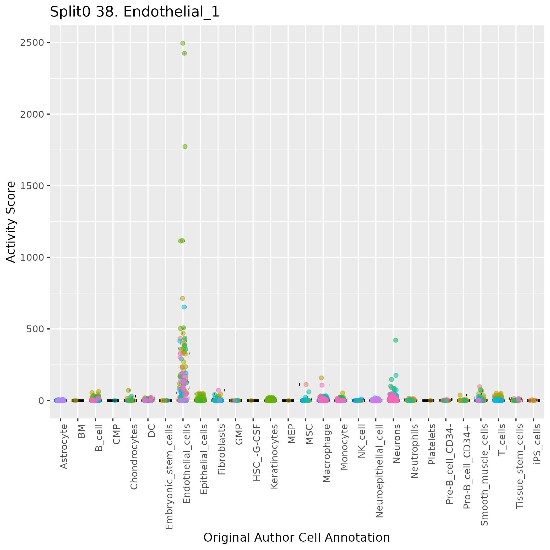 Endothelium (Kameneva) Marker gene were obtained from Fig. 1D of Kameneva et al (PMID 33833454). These genes were used by the authors to annotate each cell type in their human fetal adrenal scRNA-seq data obtained 6, 8, 9, 11, 12 and 14 weeks post conception.: Wilcoxon ranksum test P-value for gene set overrepresentation: 5.96e-05 Mean rank of genes in gene set: 69.2 Rank on gene expression program of genes in gene set: