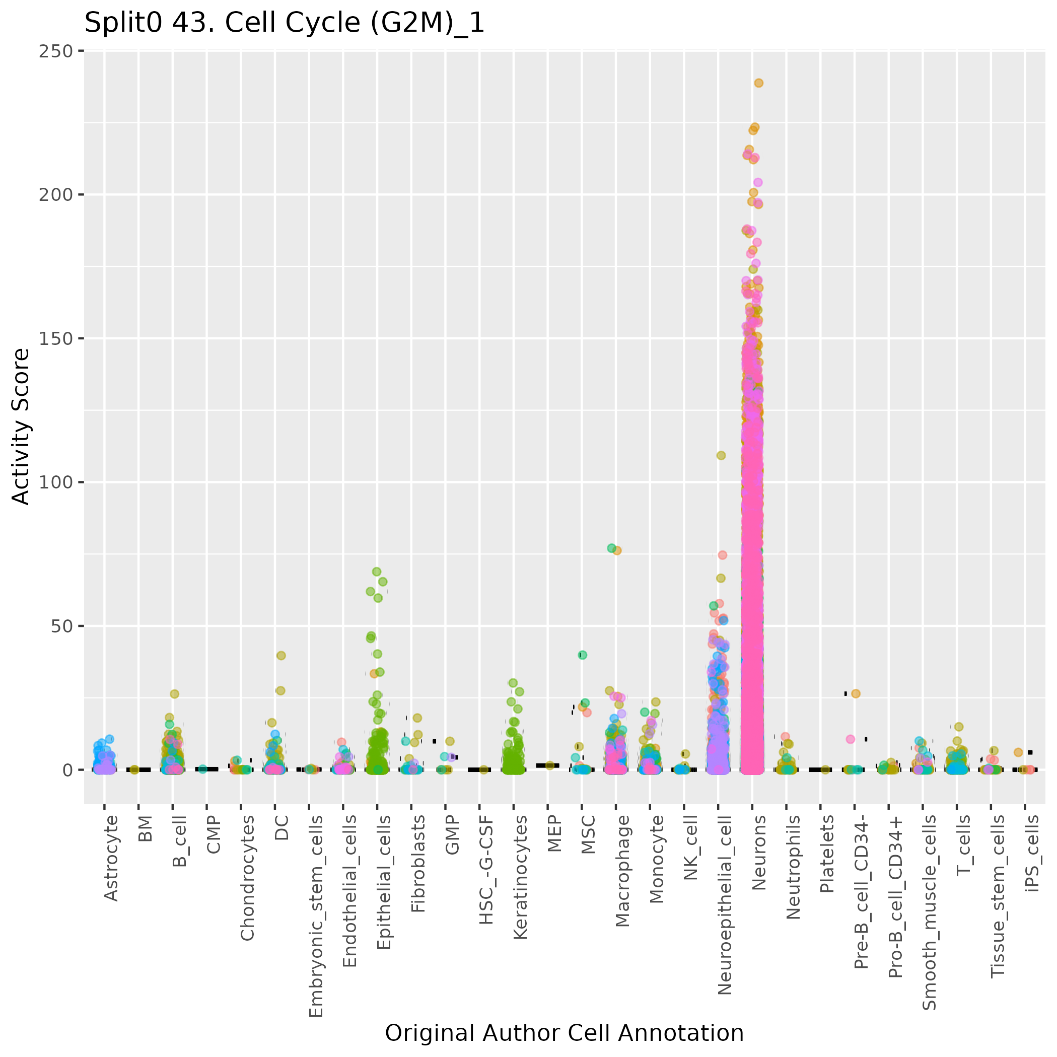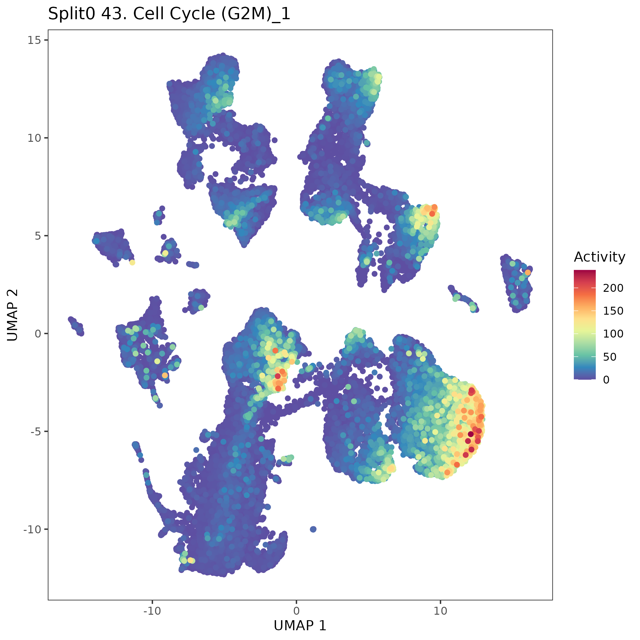 Cycling cells: Cycling T cells (model markers) proliferating T lymphocytes: Wilcoxon ranksum test P-value for gene set overrepresentation: 7.29e-01 Mean rank of genes in gene set: 12121.6 Rank on gene expression program of genes in gene set: