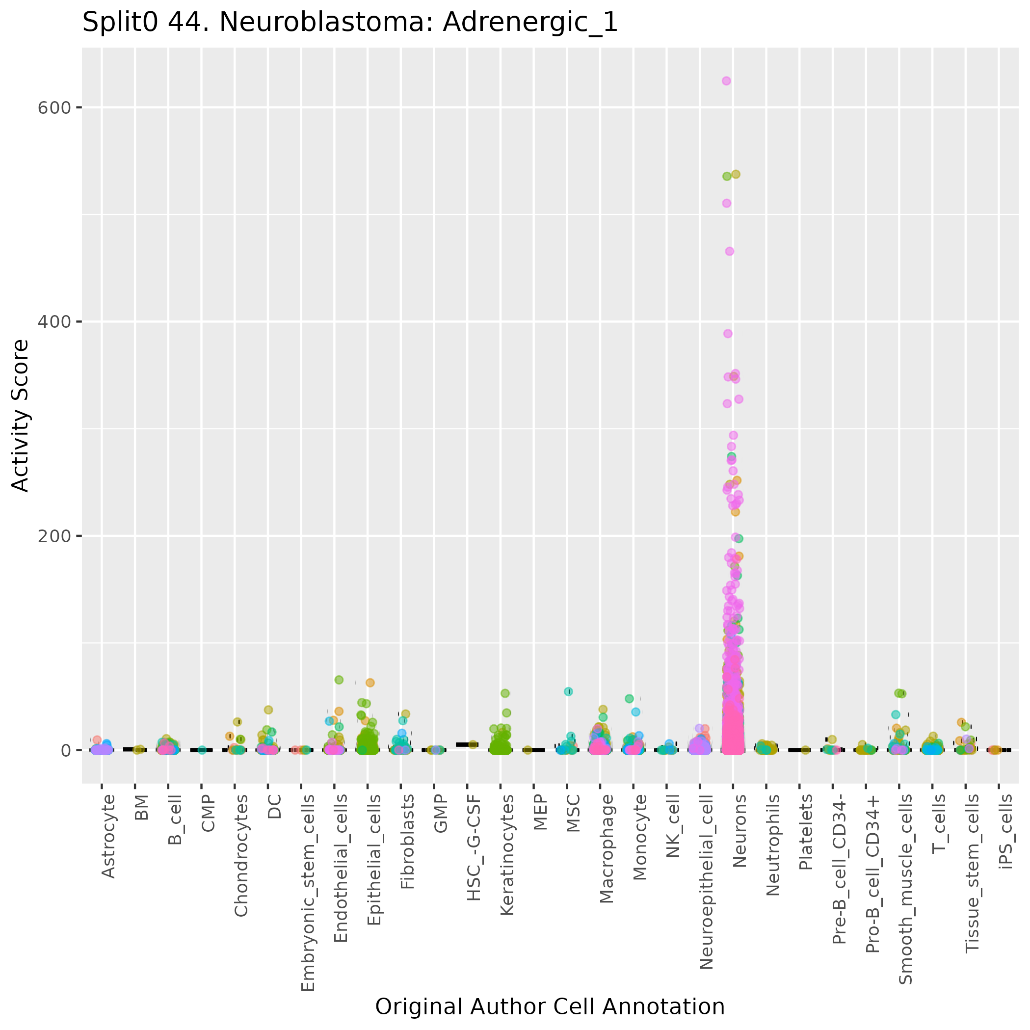 Adrenergic neuroblatoma (Olsen) Stated on page 6 of the main text of Olsen et al. https://www.biorxiv.org/content/10.1101/2020.05.04.077057v1 - neuroblastoma adrenergic markers derived from their data, which are state as resembling sympathoblasts and lacking chromffin markers such as PNMT: Wilcoxon ranksum test P-value for gene set overrepresentation: 3.17e-01 Mean rank of genes in gene set: 8441.5 Rank on gene expression program of genes in gene set:
