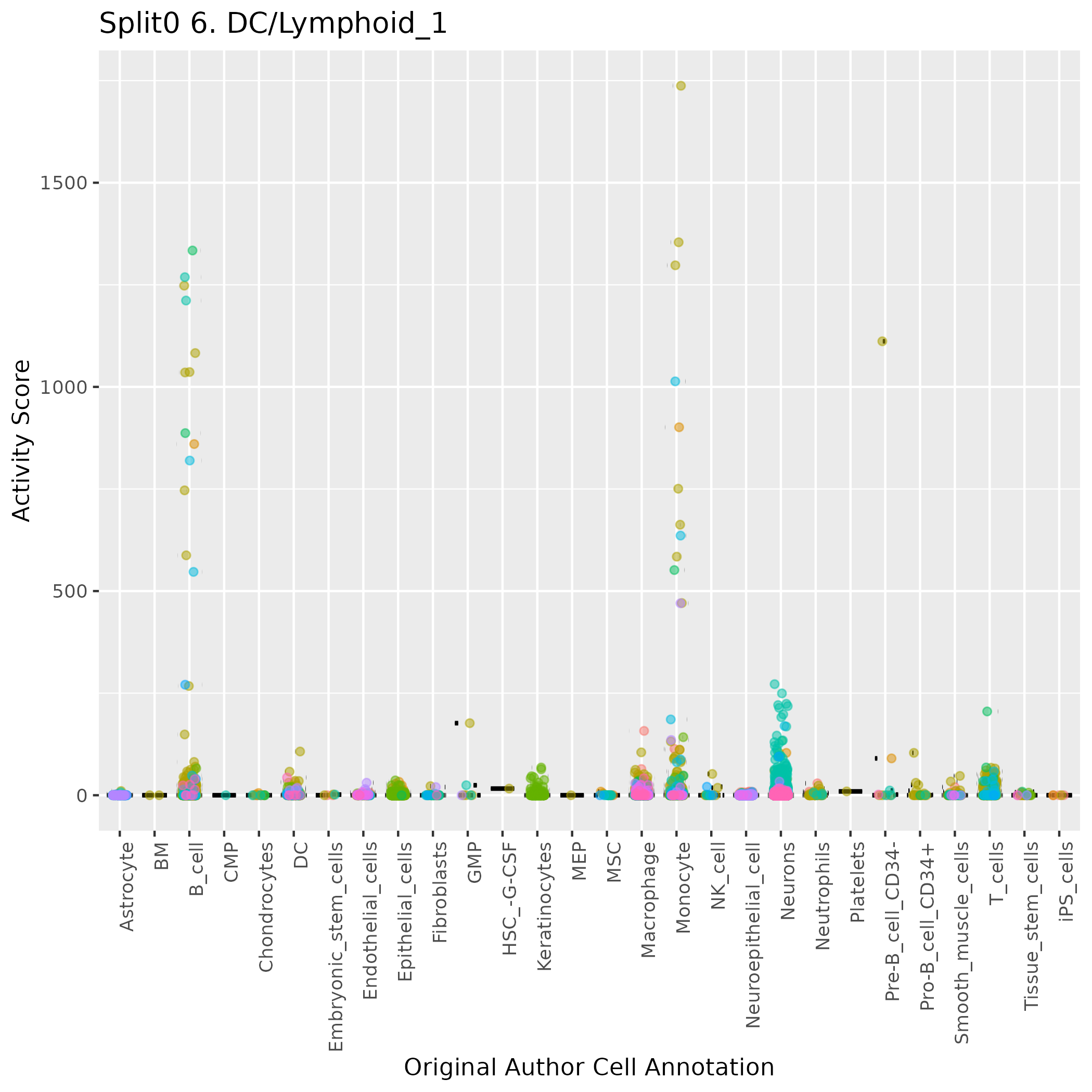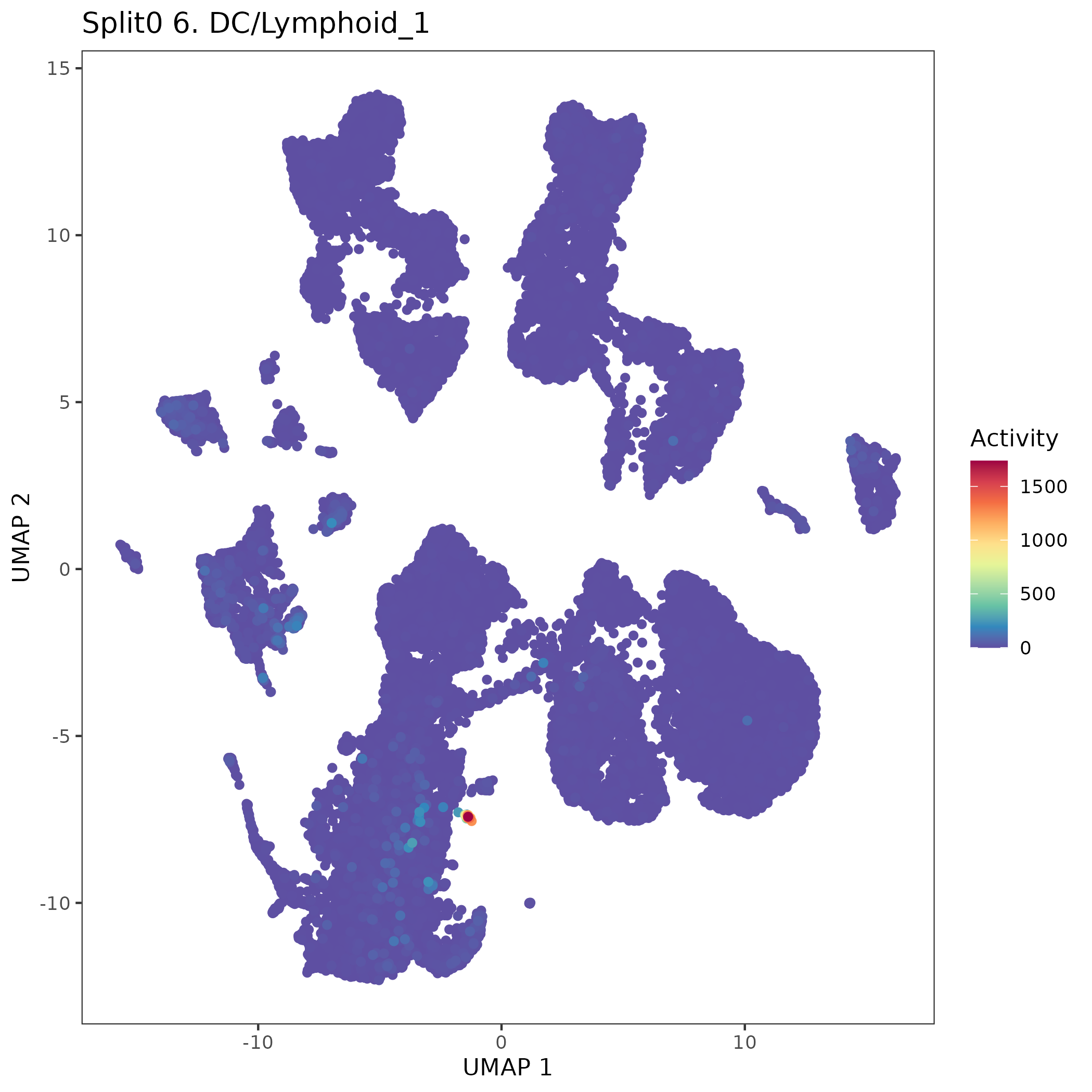 DC precursor: DC precursor (model markers) dendritic cell precursors that differentiate into dendritic cells: Wilcoxon ranksum test P-value for gene set overrepresentation: 7.43e-01 Mean rank of genes in gene set: 13271.5 Rank on gene expression program of genes in gene set: