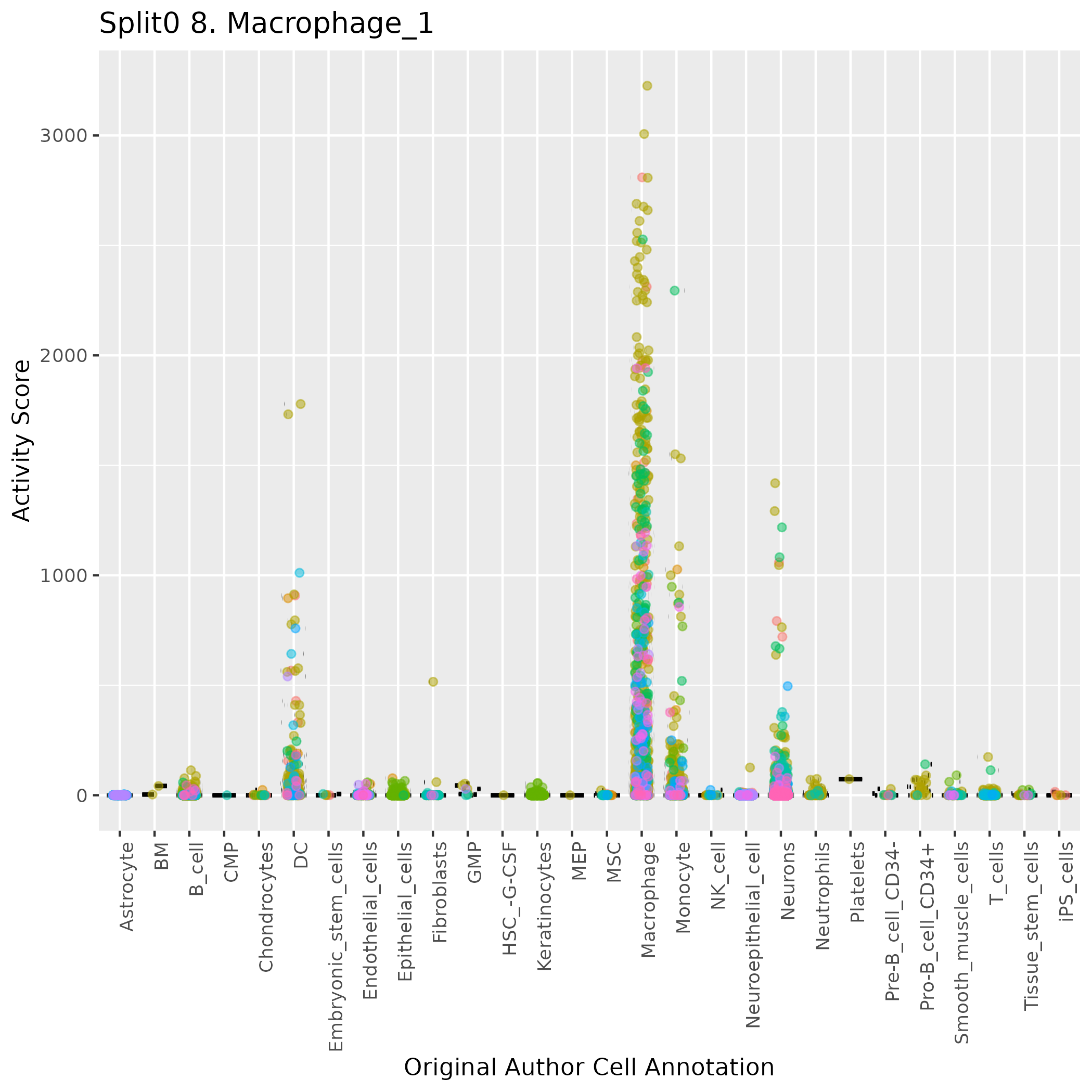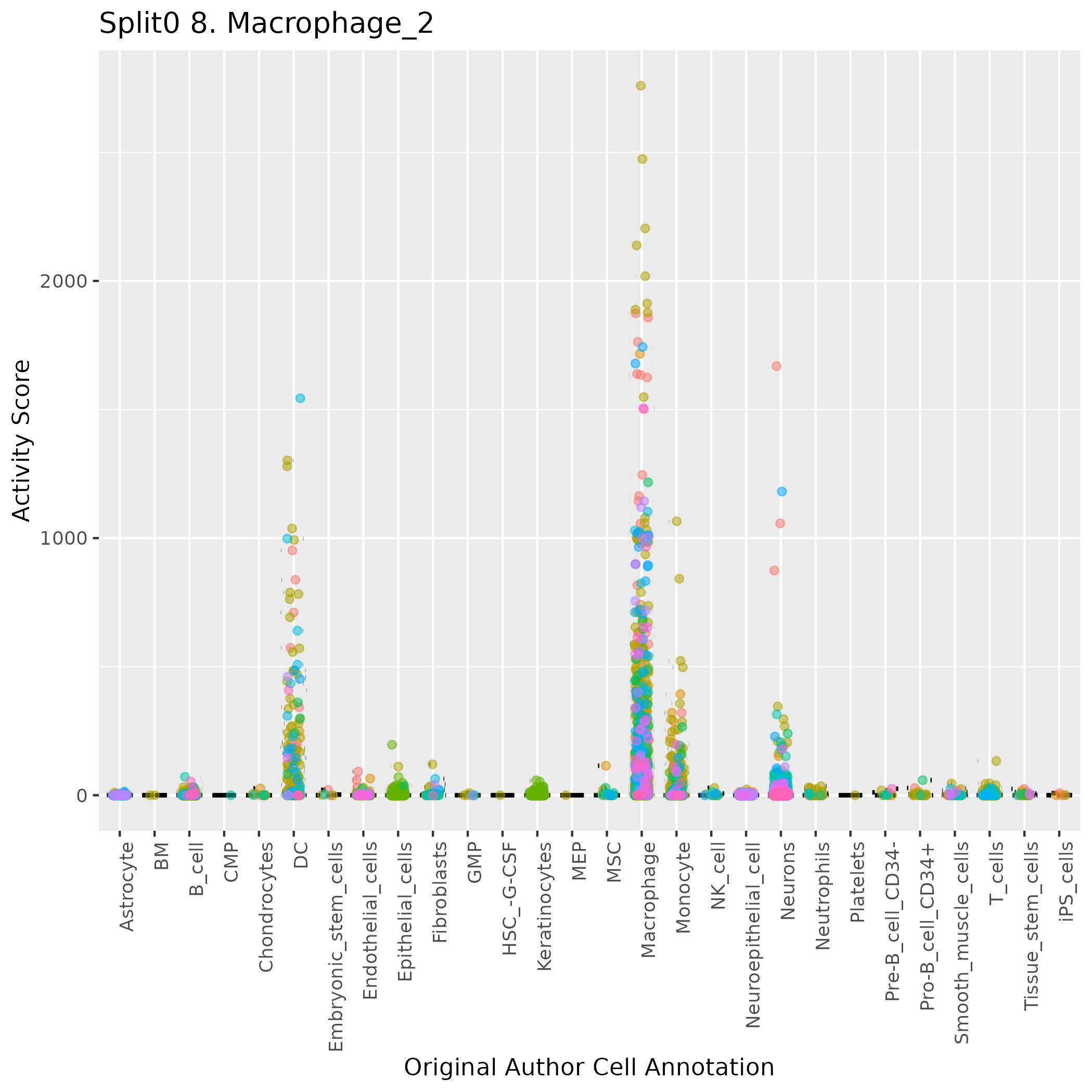 Mast cells: Mast cells (model markers) long-lived innate migrant cells found in most tissues with many large basophilic granules rich in histamine and heparin: Wilcoxon ranksum test P-value for gene set overrepresentation: 4.24e-01 Mean rank of genes in gene set: 10003.17 Rank on gene expression program of genes in gene set: