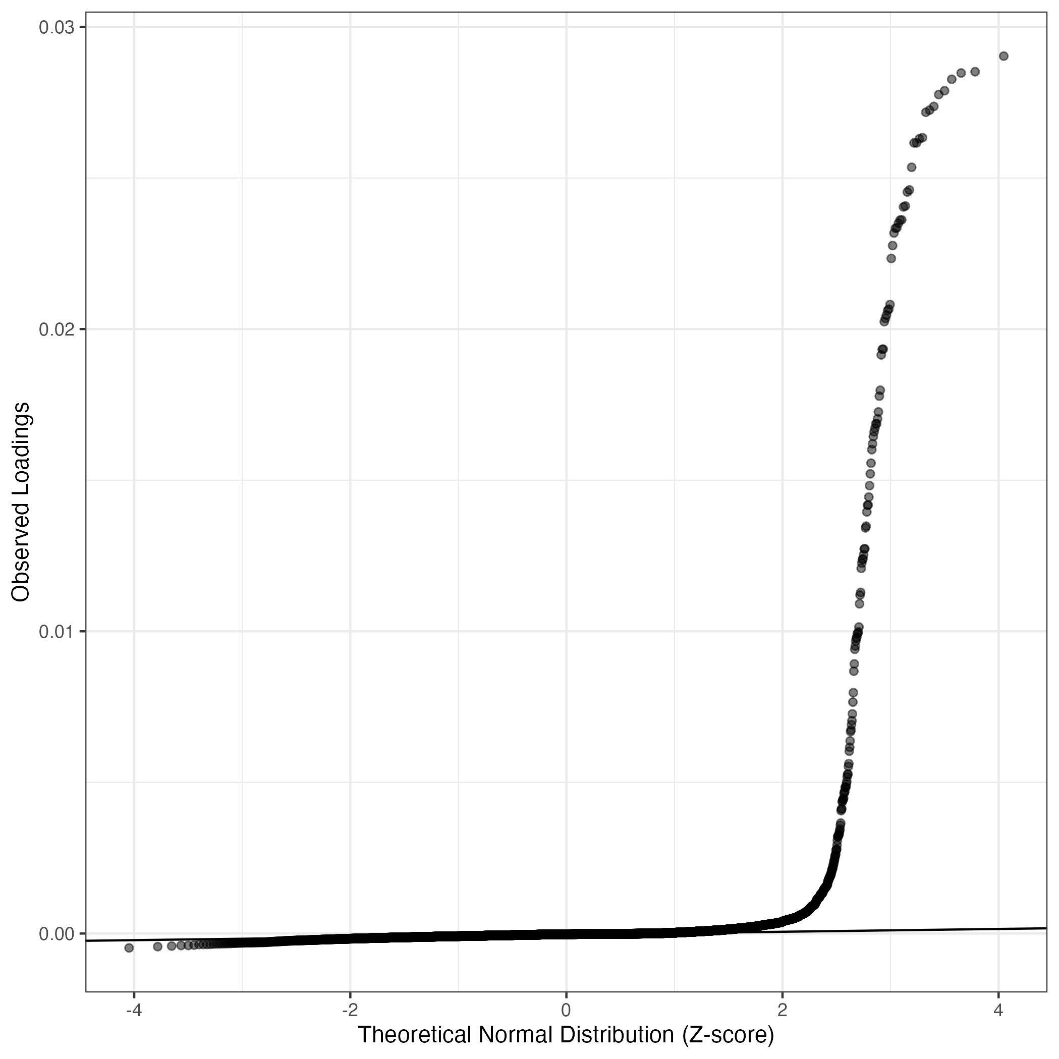 QQ Plot showing correlations with other GEPs in this dataset, calculated by Spearman correlation: