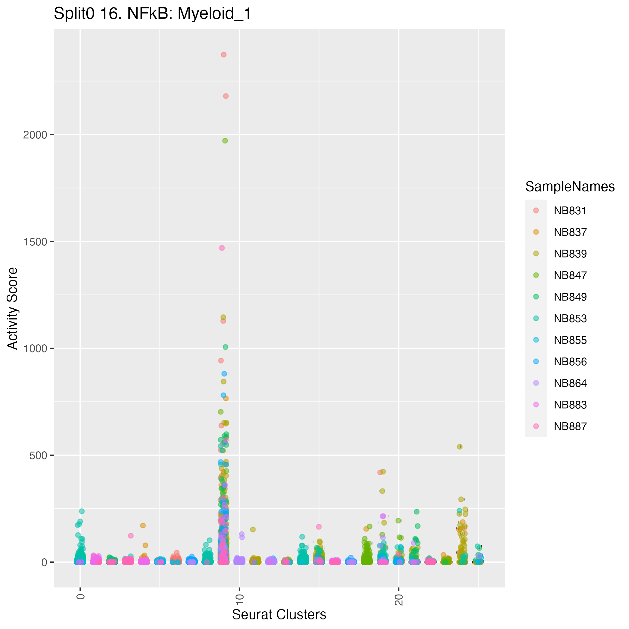 UMAP plots showing activity of gene expression program identified in community:16. NFkB: Myeloid