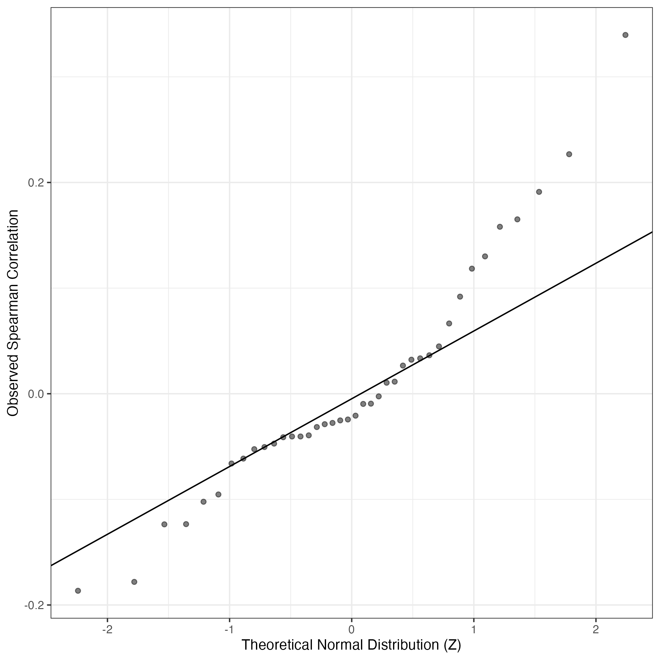 QQ-plot of gene loadings, averaged over both independent splits of the data