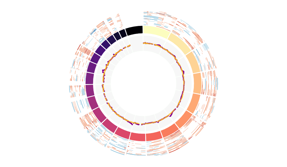 Outer tracks are putative CNV regions (gains = red, losses = blue) for each patient