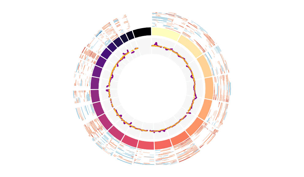 Outer tracks are putative CNV regions (gains = red, losses = blue) for each patient