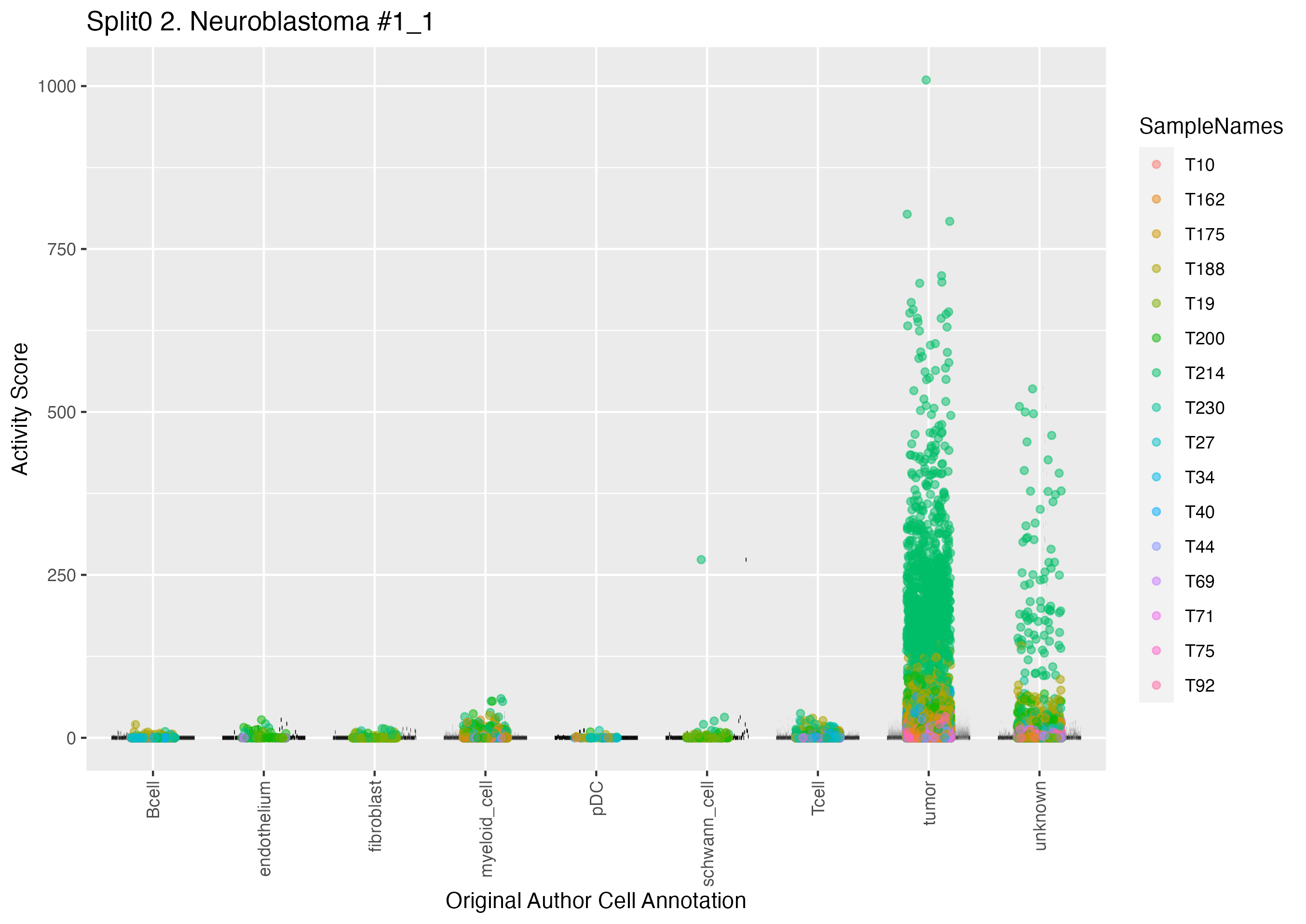 UMAP plots showing activity of gene expression program identified in GEP 2. Neuroblastoma #1: