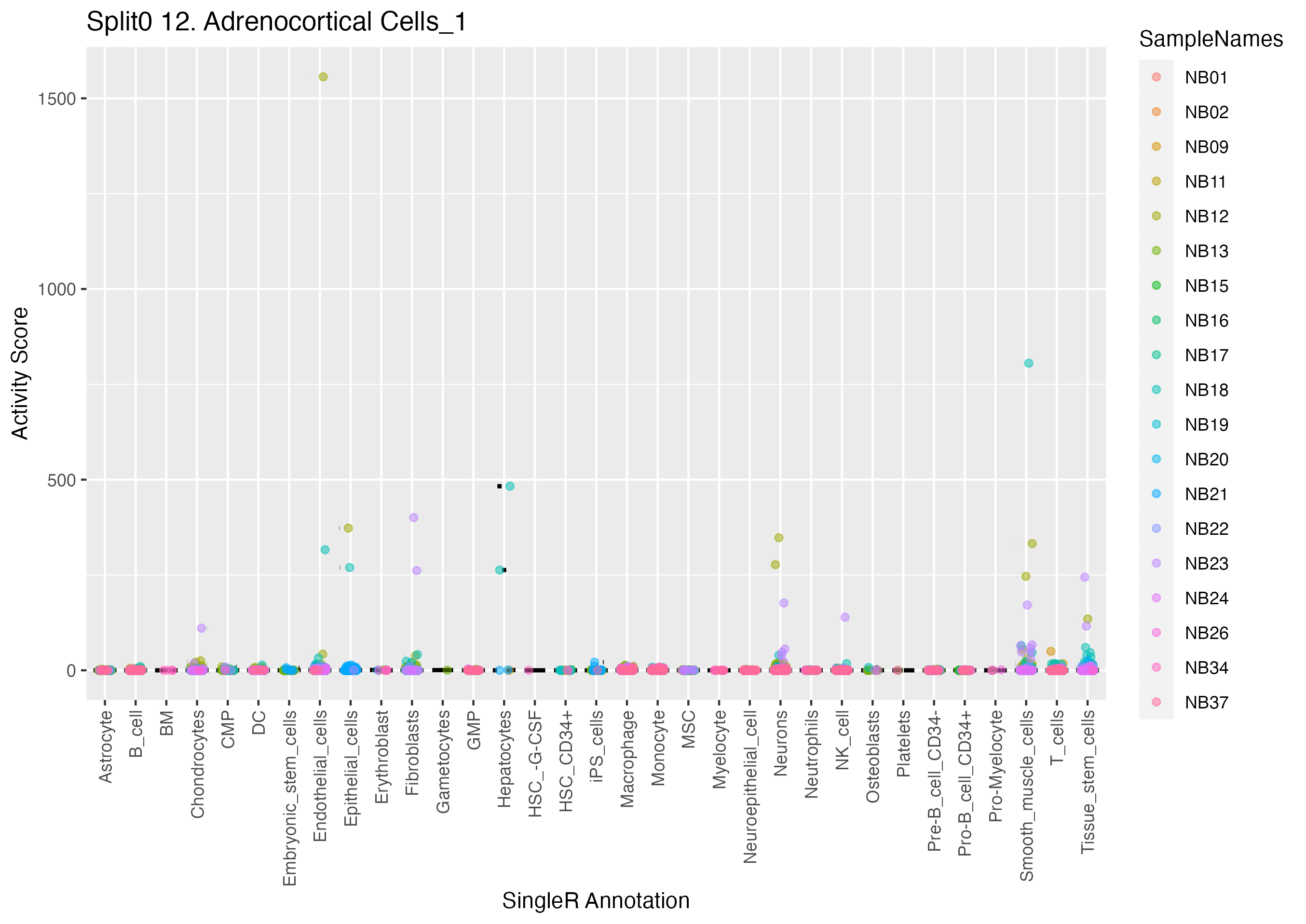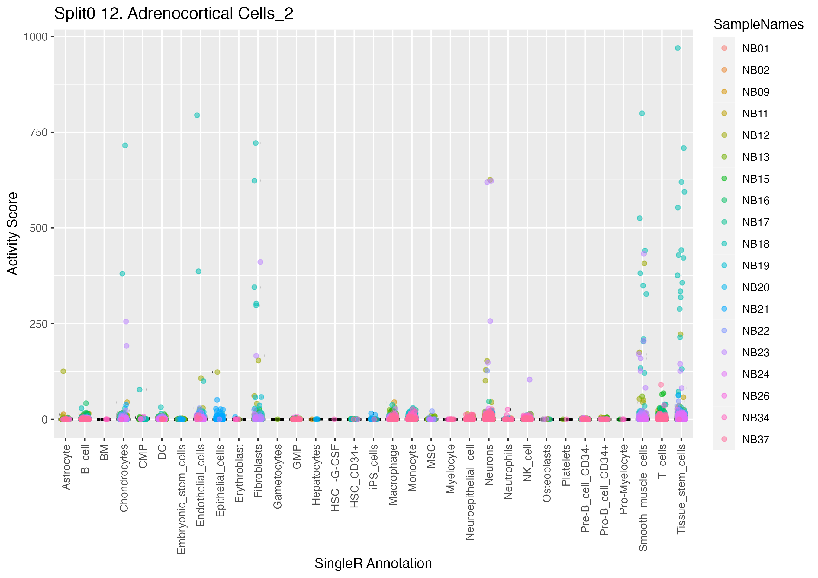 Adrenergic neuroblatoma (Olsen) Stated on page 6 of the main text of Olsen et al. https://www.biorxiv.org/content/10.1101/2020.05.04.077057v1 - neuroblastoma adrenergic markers derived from their data, which are state as resembling sympathoblasts and lacking chromffin markers such as PNMT: Wilcoxon ranksum test P-value for gene set overrepresentation: 9.92e-01 Mean rank of genes in gene set: 28051.5 Rank on gene expression program of genes in gene set: