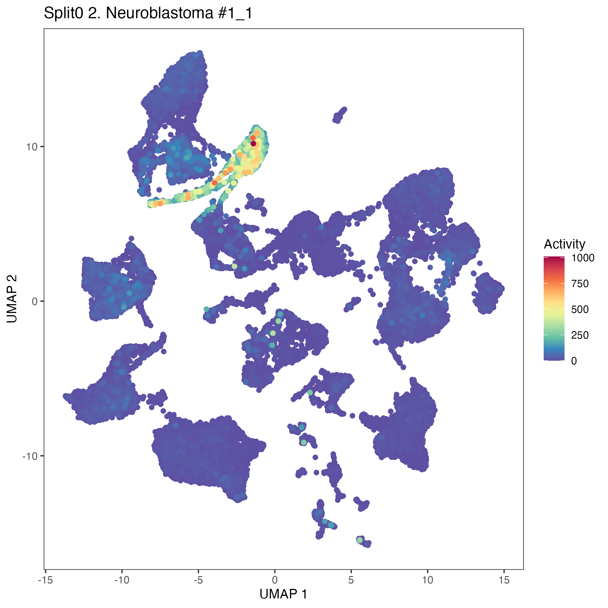 UMAP plots showing activity of gene expression program identified in GEP 2. Neuroblastoma #1: