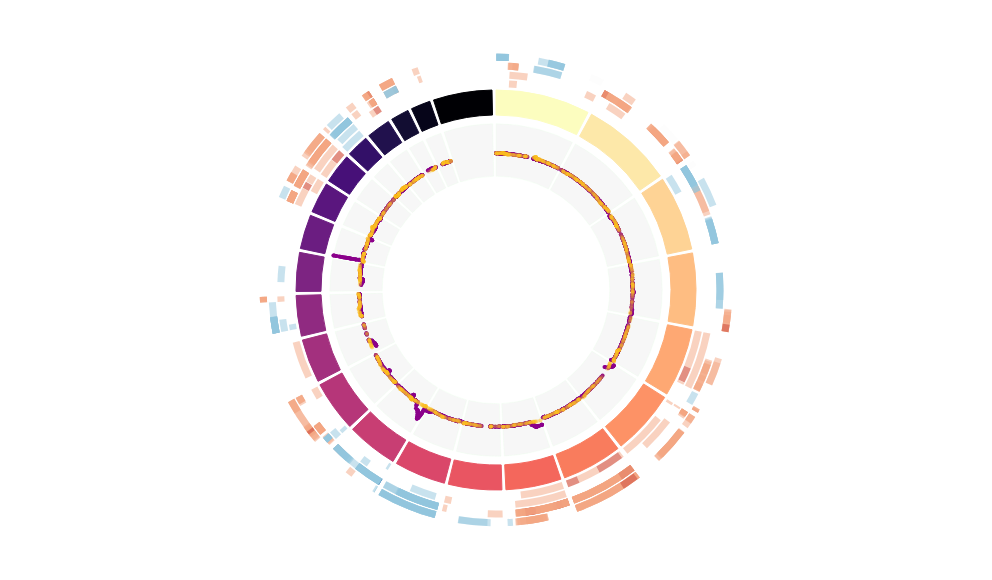 Outer tracks are putative CNV regions (gains = red, losses = blue) for each patient