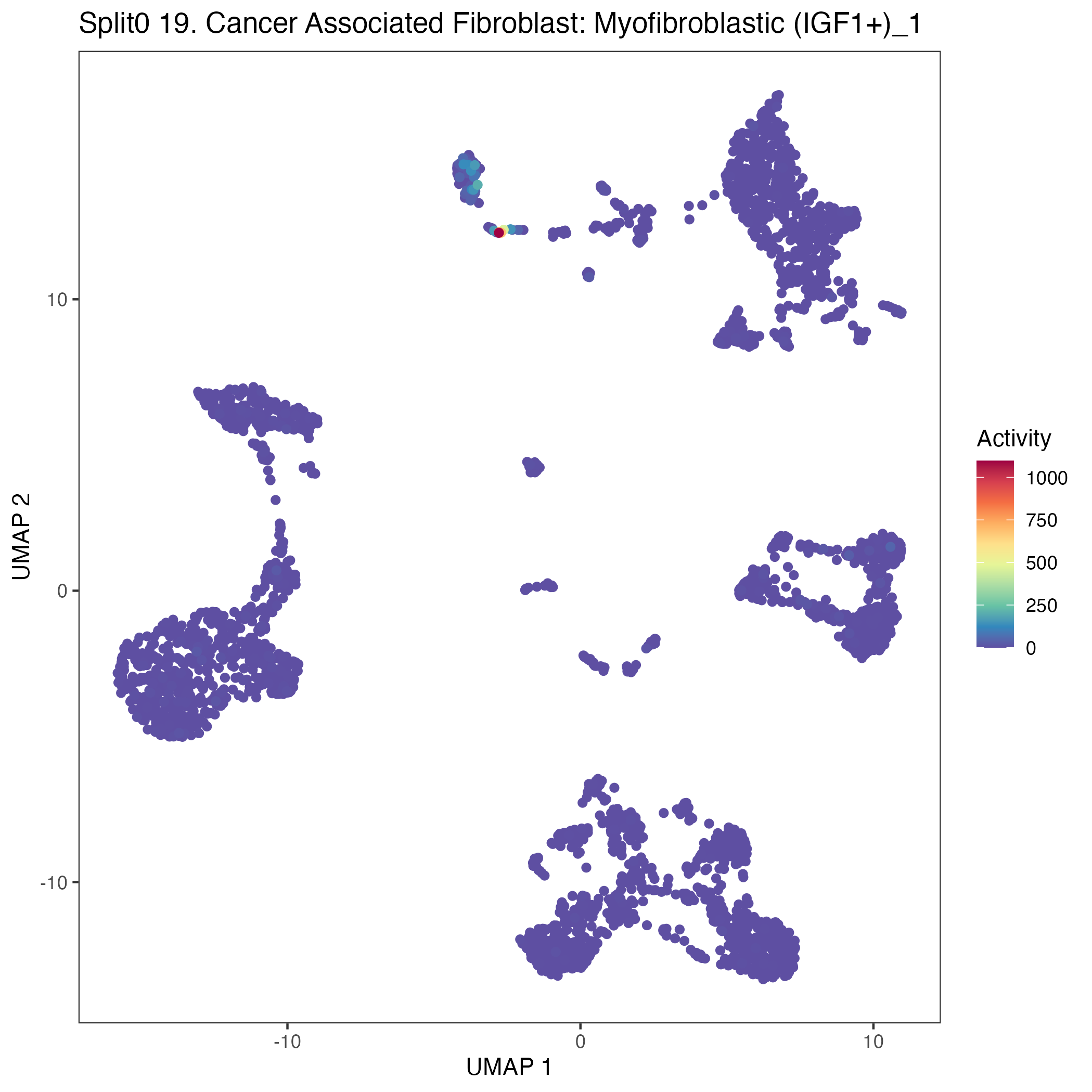 Inflammatory CAF These marker genes were curated across cancer subtypes in multiple organ systems as reviewed in Lavie et. al. (PMID 35883004) and contain inflammatory specific CAF genes: Wilcoxon ranksum test P-value for gene set overrepresentation: 9.71e-03 Mean rank of genes in gene set: 4583 Rank on gene expression program of genes in gene set: