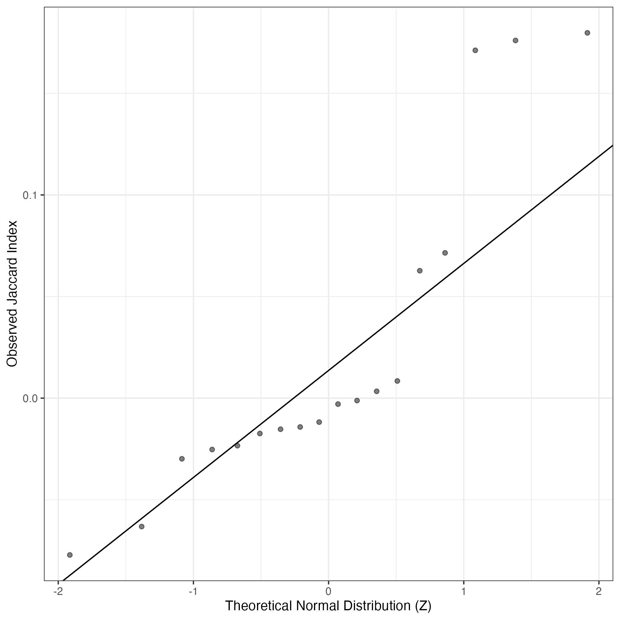 Wilcoxon ranksum test P-value for gene set overrepresentation: 2.84e-01