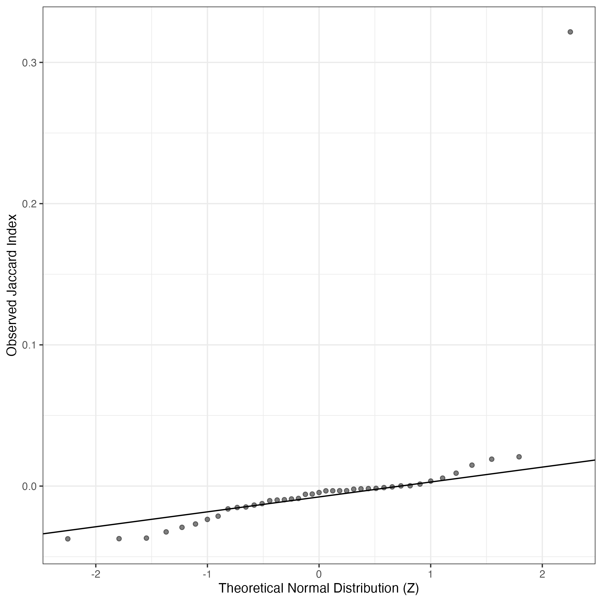 Wilcoxon ranksum test P-value for gene set overrepresentation: 9.88e-01