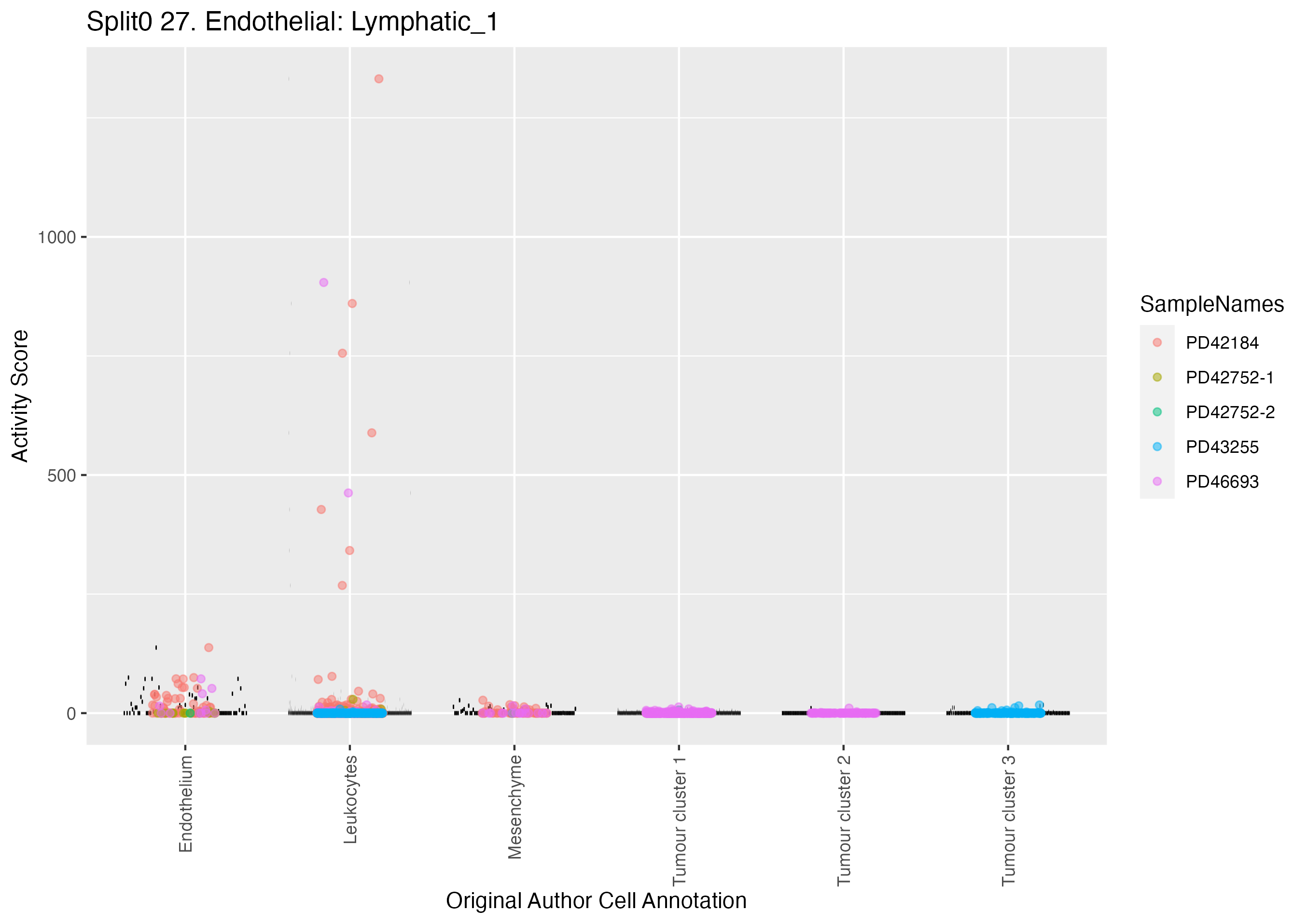 Vascular (Kildisiute) Vascular markers obtained from Kildisiute et al, Supplmenentary Table 2, references supporting these genes are provided in Supp Table S2 of Kildisiute et al (PMID 33547074) https://www.science.org/doi/suppl/10.1126/sciadv.abd3311/suppl_file/abd3311_tables_s1_to_s12.xlsx: Wilcoxon ranksum test P-value for gene set overrepresentation: 2.15e-01 Mean rank of genes in gene set: 4627.67 Rank on gene expression program of genes in gene set:
