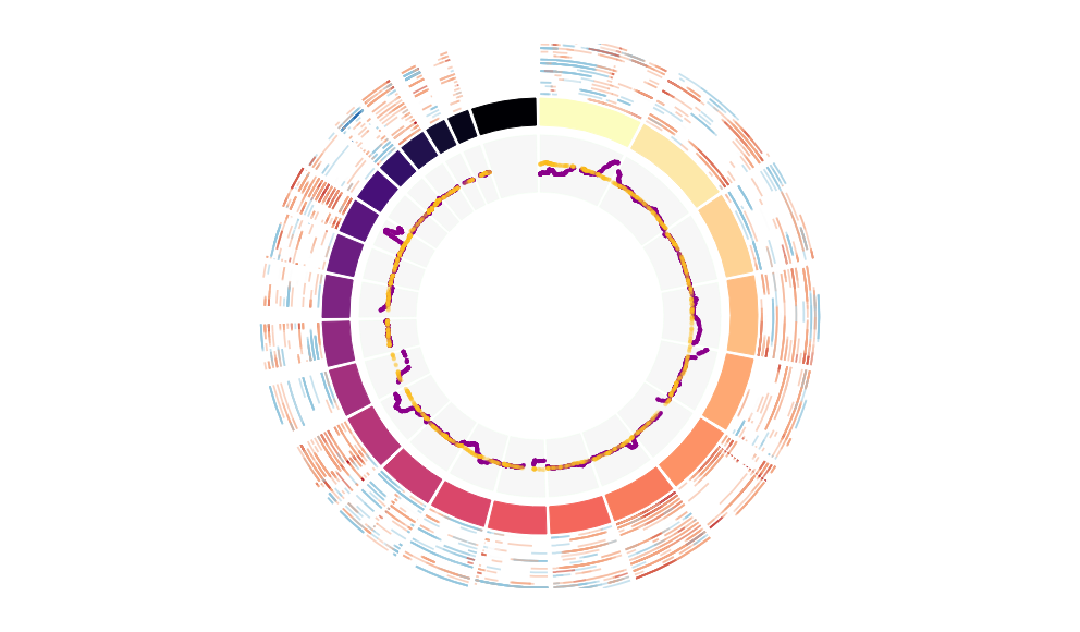 Outer tracks are putative CNV regions (gains = red, losses = blue) for each patient