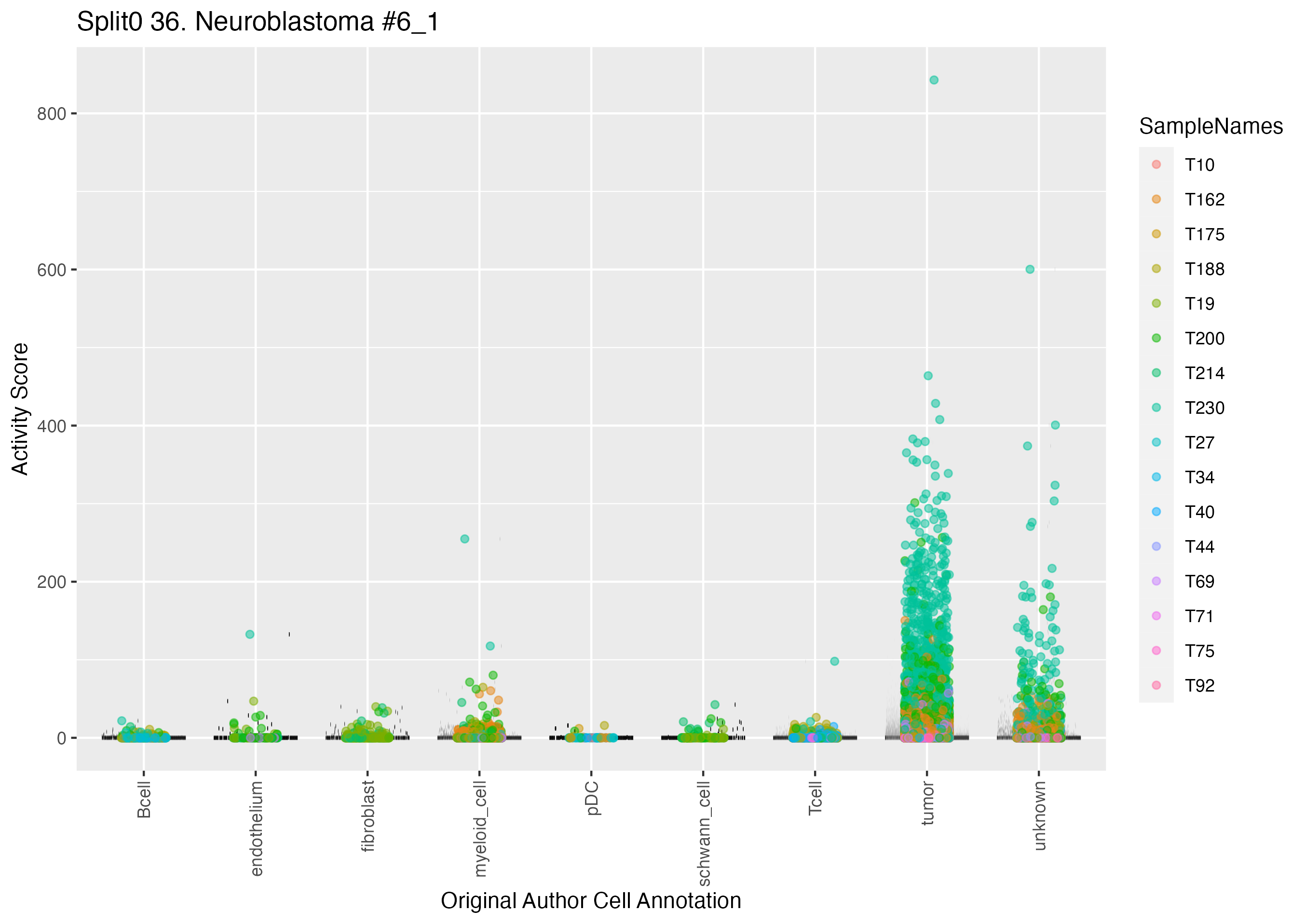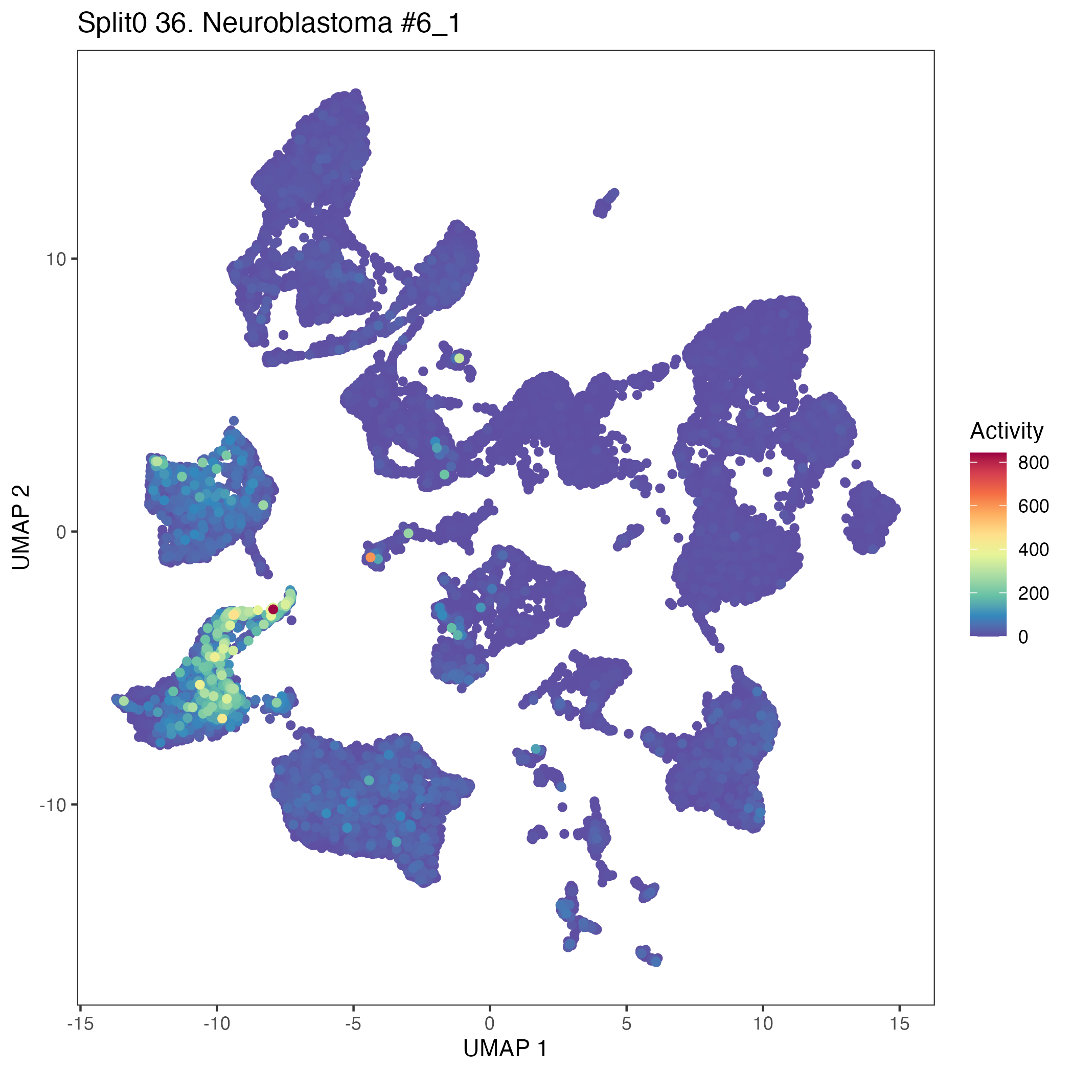 UMAP plots showing activity of gene expression program identified in GEP 36. Neuroblastoma #6: