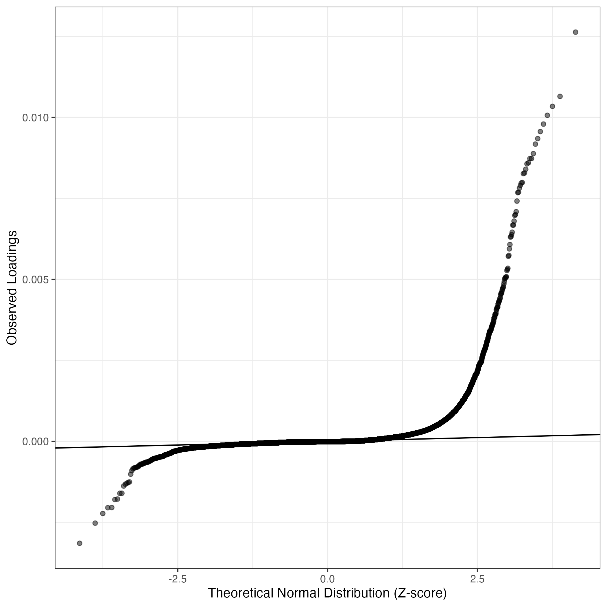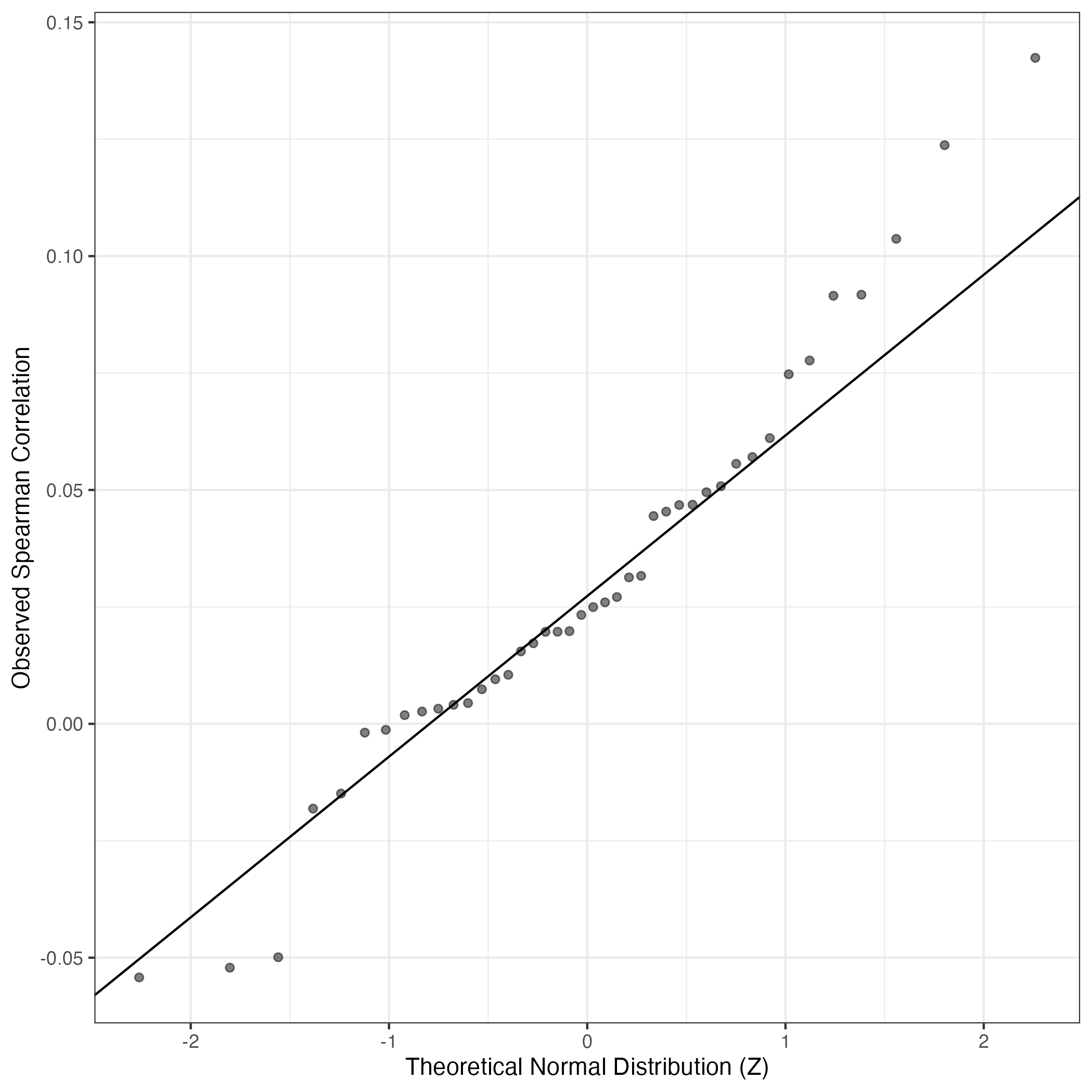QQ Plot showing correlations with other GEPs in this dataset, calculated by Spearman correlation: