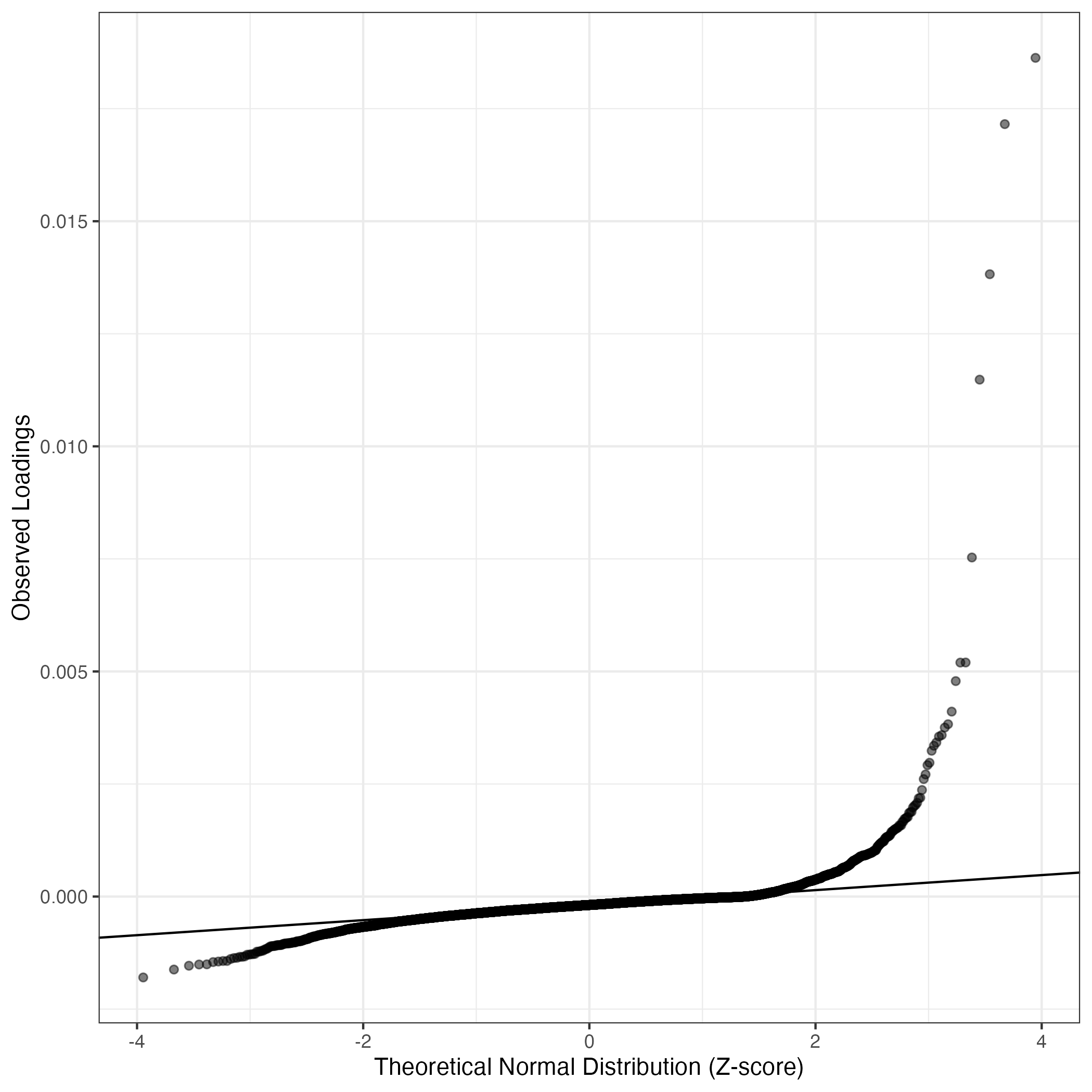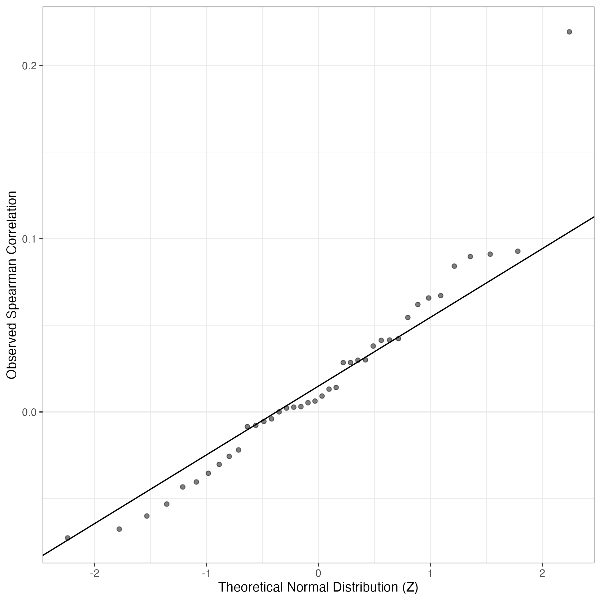 QQ Plot showing correlations with other GEPs in this dataset, calculated by Spearman correlation: