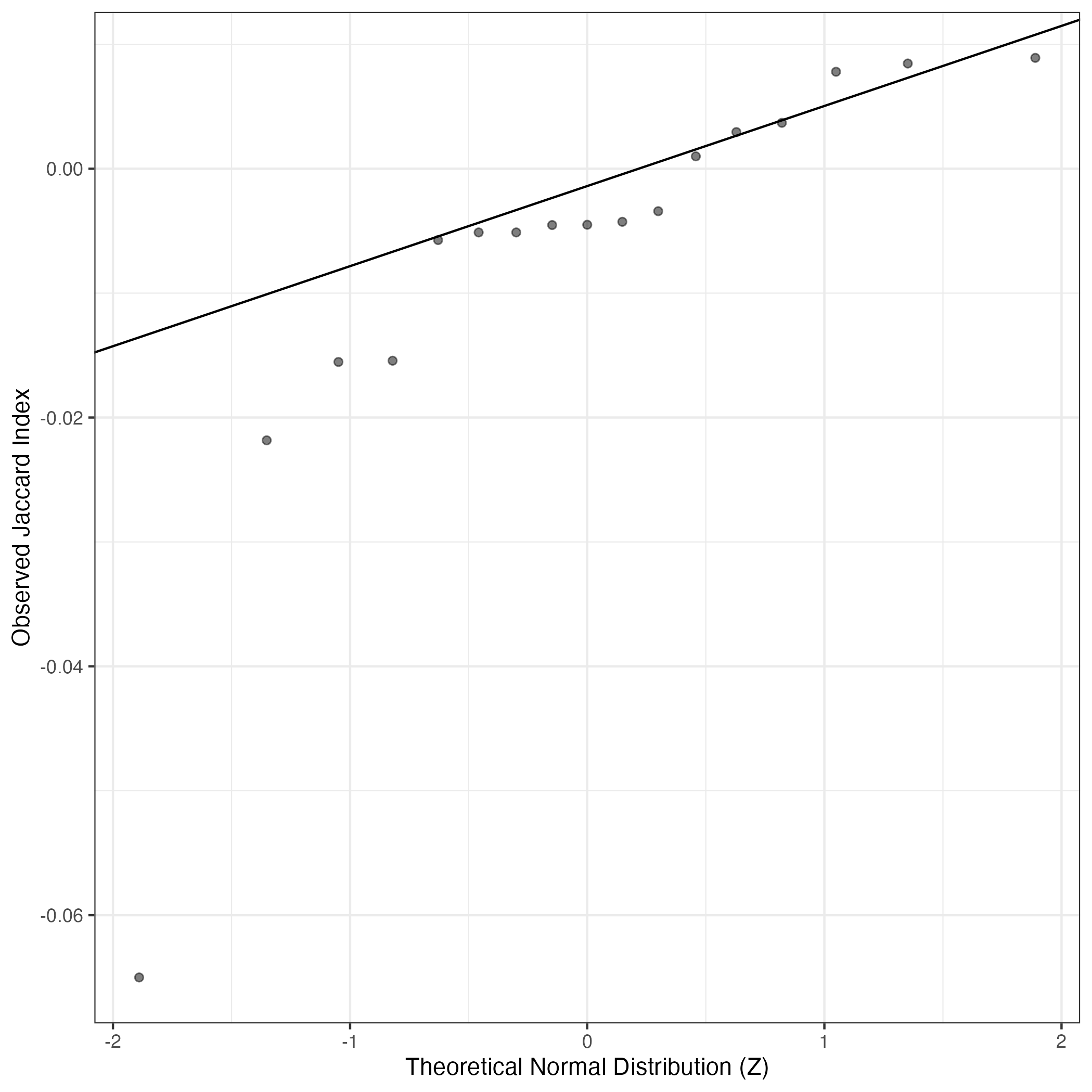 Wilcoxon ranksum test P-value for gene set overrepresentation: 9.55e-01