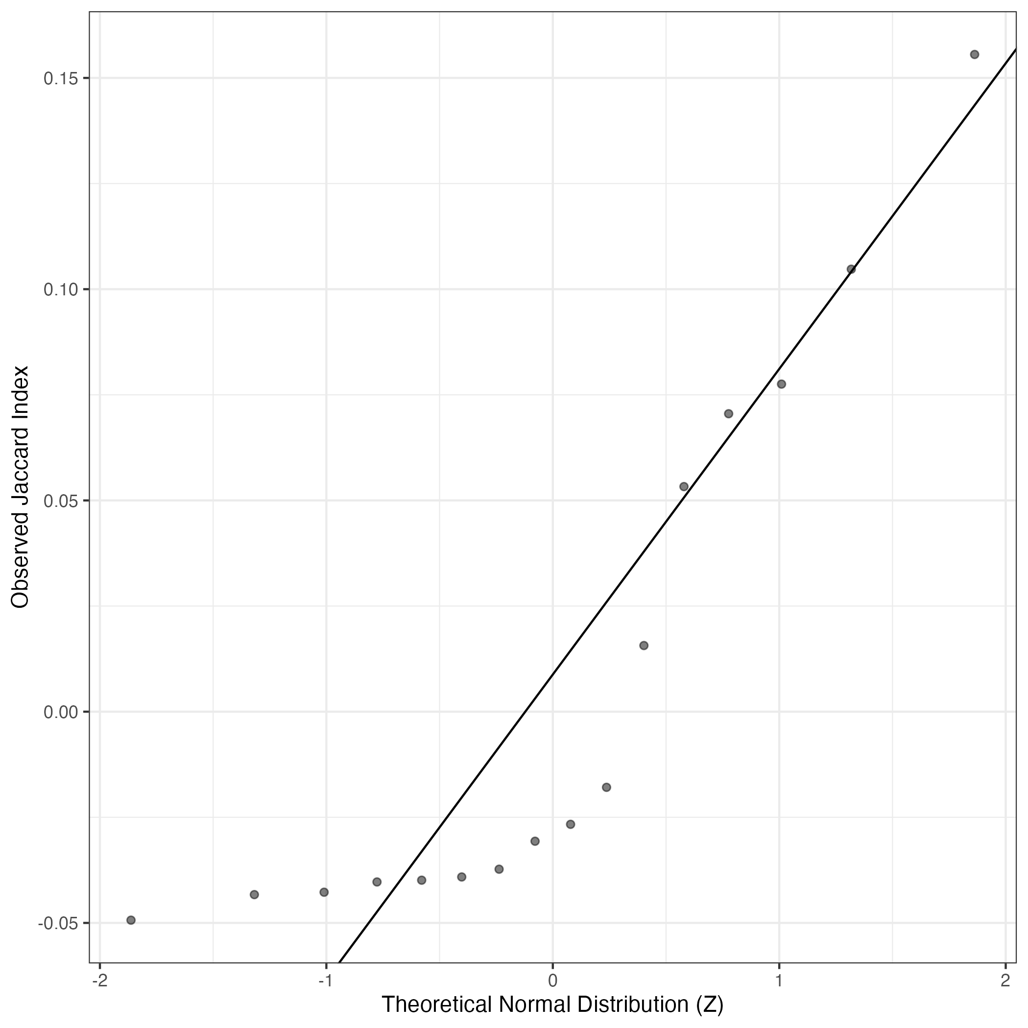 QQ-plot of gene loadings, averaged over both independent splits of the data