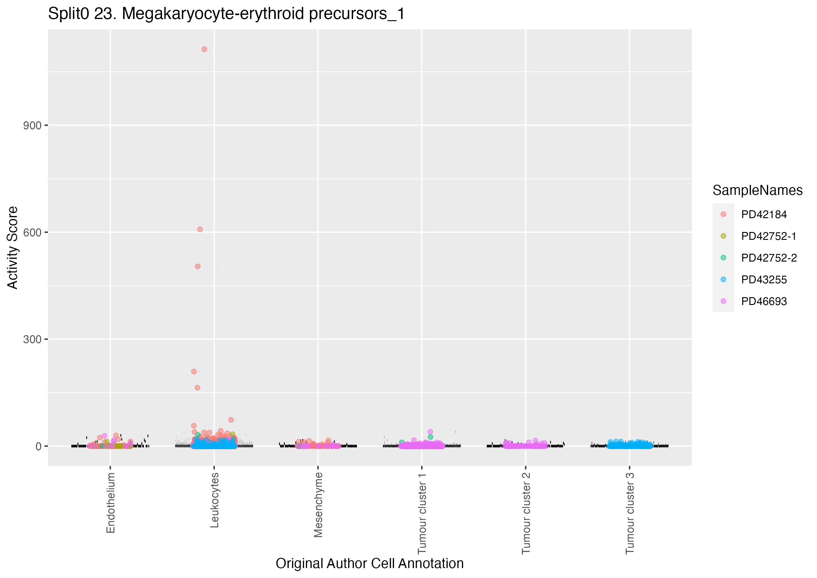 Early MK: Early MK (curated markers) early megakaryocytes which are committed to megakaryocyte lineage cells: Wilcoxon ranksum test P-value for gene set overrepresentation: 9.55e-01 Mean rank of genes in gene set: 12413 Rank on gene expression program of genes in gene set: