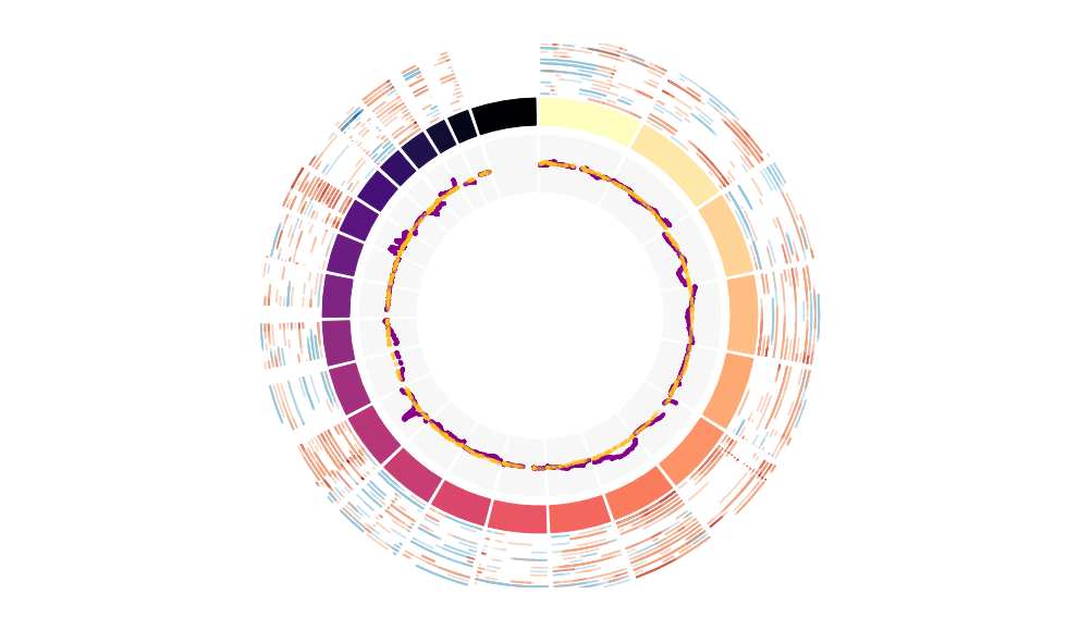 Outer tracks are putative CNV regions (gains = red, losses = blue) for each patient