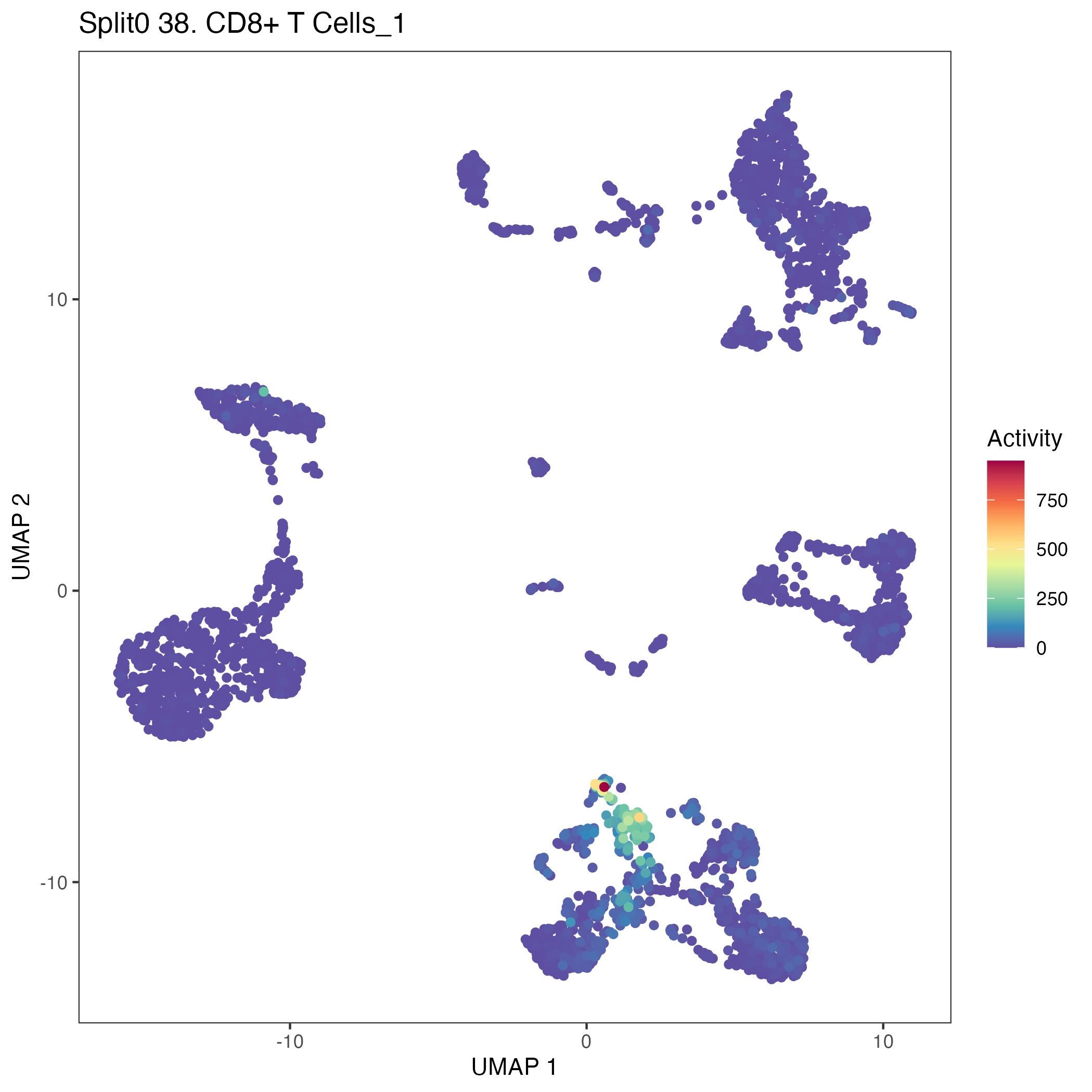 T cells: Regulatory T cells (model markers) T cell subpopulation which modulates immune responses and regulates other cells through direct cell-cell contact and cytokine release: Wilcoxon ranksum test P-value for gene set overrepresentation: 8.40e-01 Mean rank of genes in gene set: 8078.25 Rank on gene expression program of genes in gene set:
