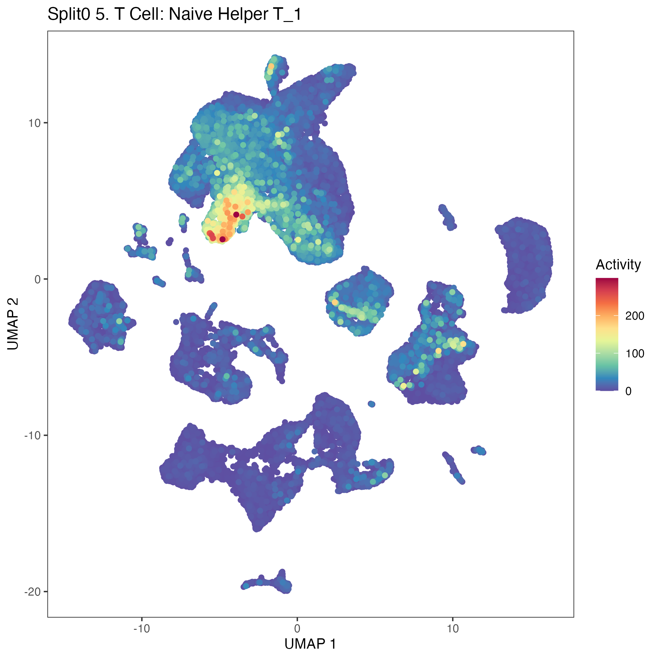 T cells: Regulatory T cells (model markers) T cell subpopulation which modulates immune responses and regulates other cells through direct cell-cell contact and cytokine release: Wilcoxon ranksum test P-value for gene set overrepresentation: 8.64e-01 Mean rank of genes in gene set: 17057.2 Rank on gene expression program of genes in gene set: