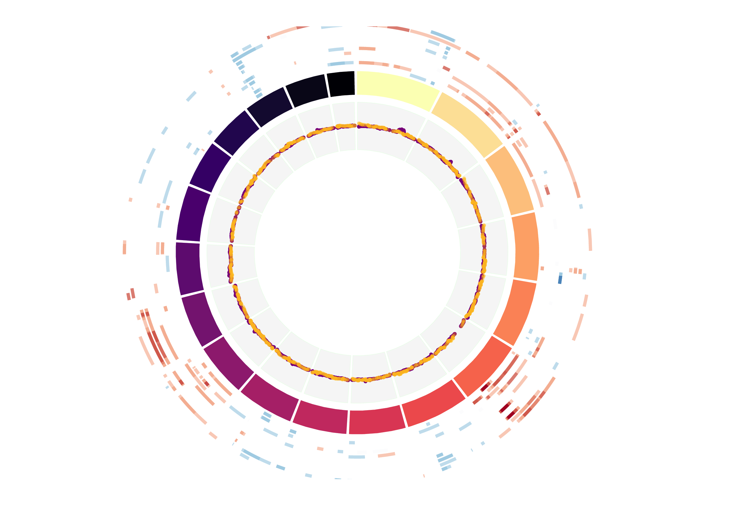 Outer tracks are putative CNV regions (gains = red, losses = blue) for each patient
