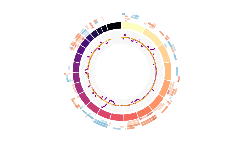 Outer tracks are putative CNV regions (gains = red, losses = blue) for each patient