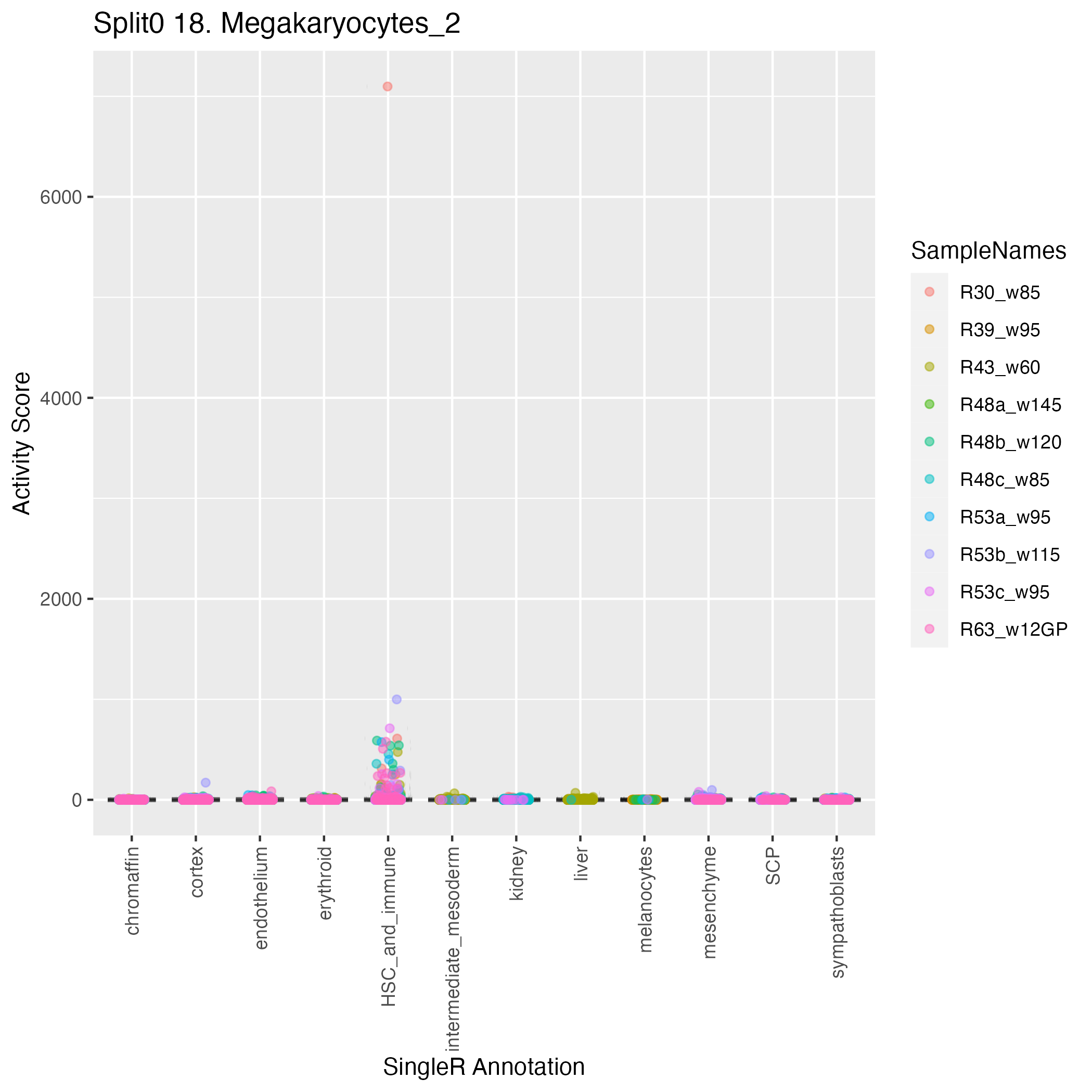 Erythroid: Early erythroid (model markers) early erythroid cells which are committed to erythroid lineage cells: Wilcoxon ranksum test P-value for gene set overrepresentation: 9.91e-01 Mean rank of genes in gene set: 18758.33 Rank on gene expression program of genes in gene set: