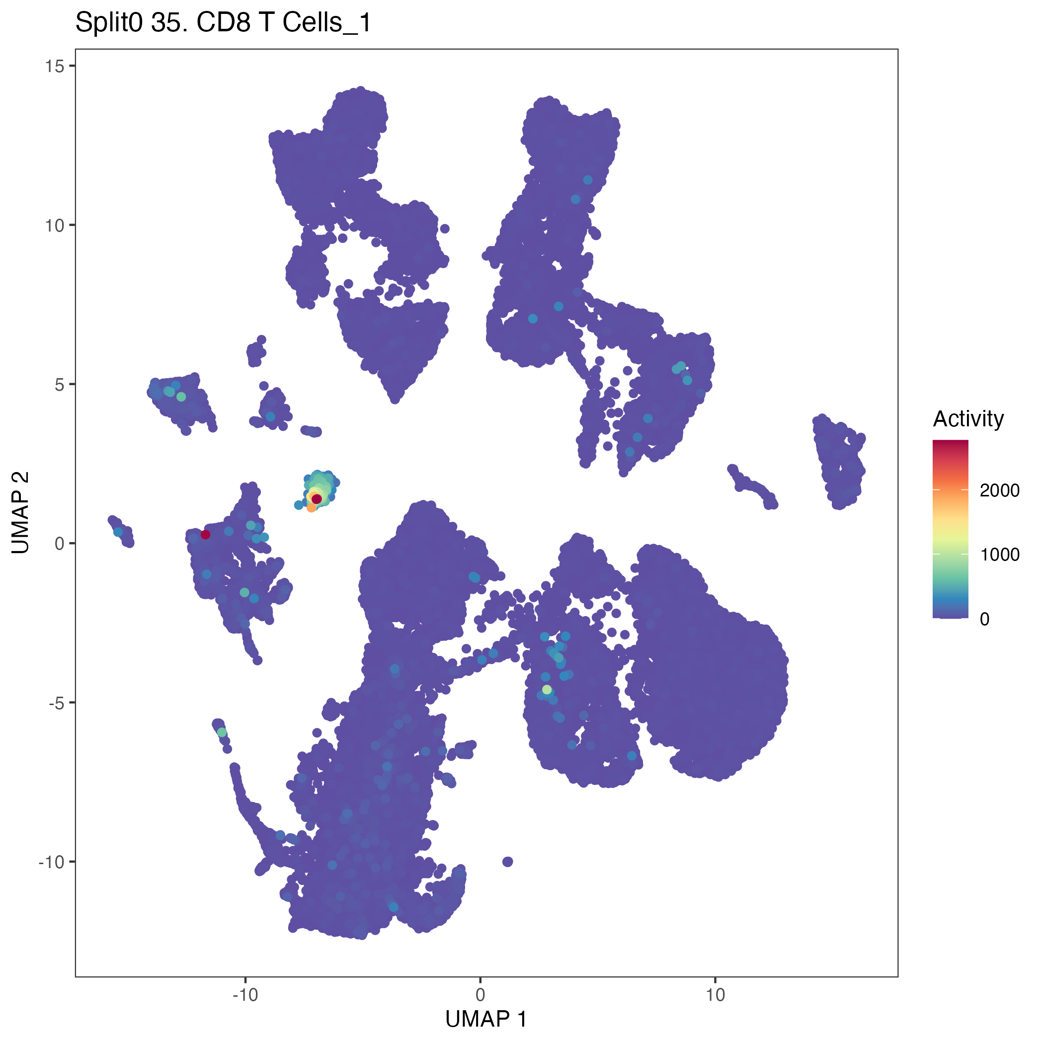 Cycling cells: Cycling T cells (curated markers) proliferating T lymphocytes: Wilcoxon ranksum test P-value for gene set overrepresentation: 7.90e-01 Mean rank of genes in gene set: 13288.67 Rank on gene expression program of genes in gene set: