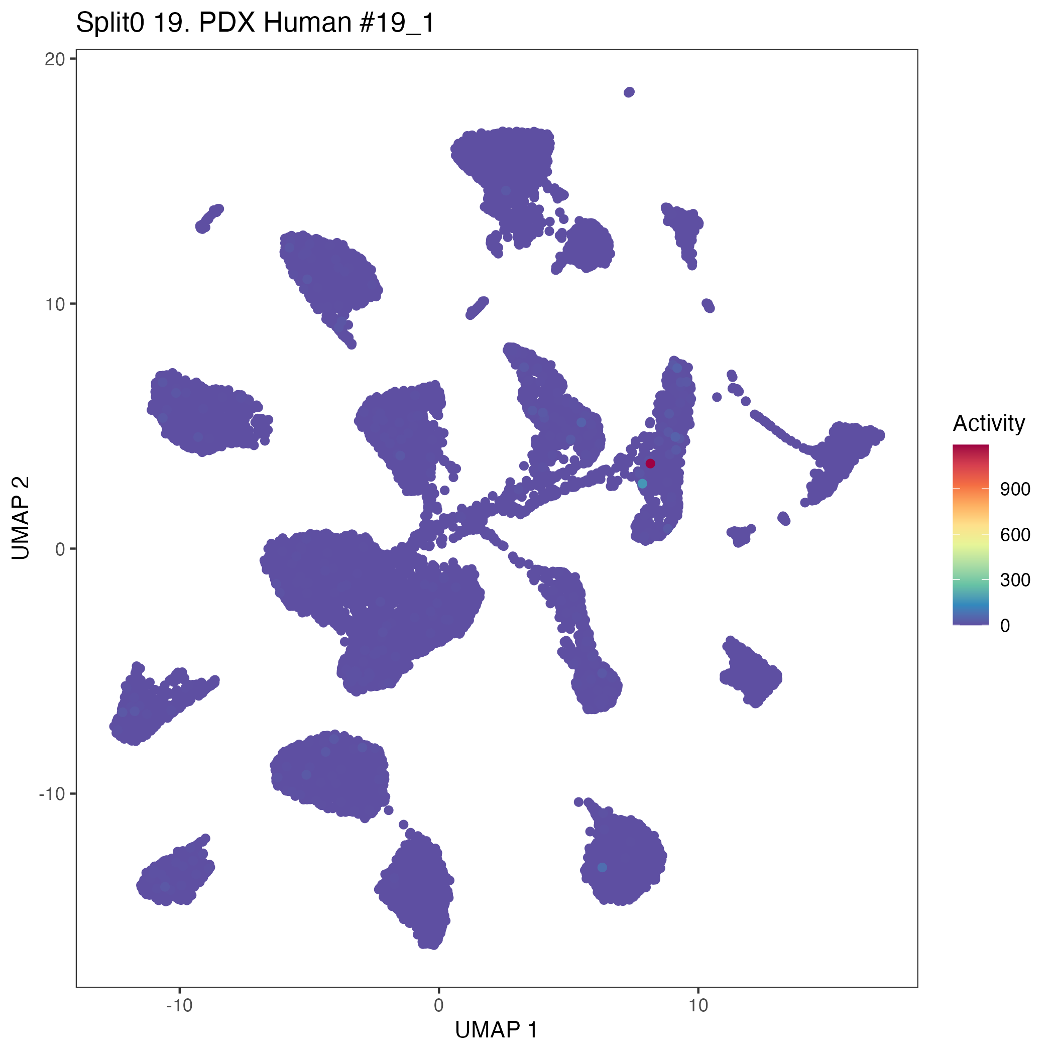 SCPs neuroblastoma unique (Olsen) Similar to above, but for genes unique to neuroblastoma SCP-like cells. Note FN1 is often used as a mesenchymal marker gene.: Wilcoxon ranksum test P-value for gene set overrepresentation: 6.88e-01 Mean rank of genes in gene set: 7000.5 Rank on gene expression program of genes in gene set: