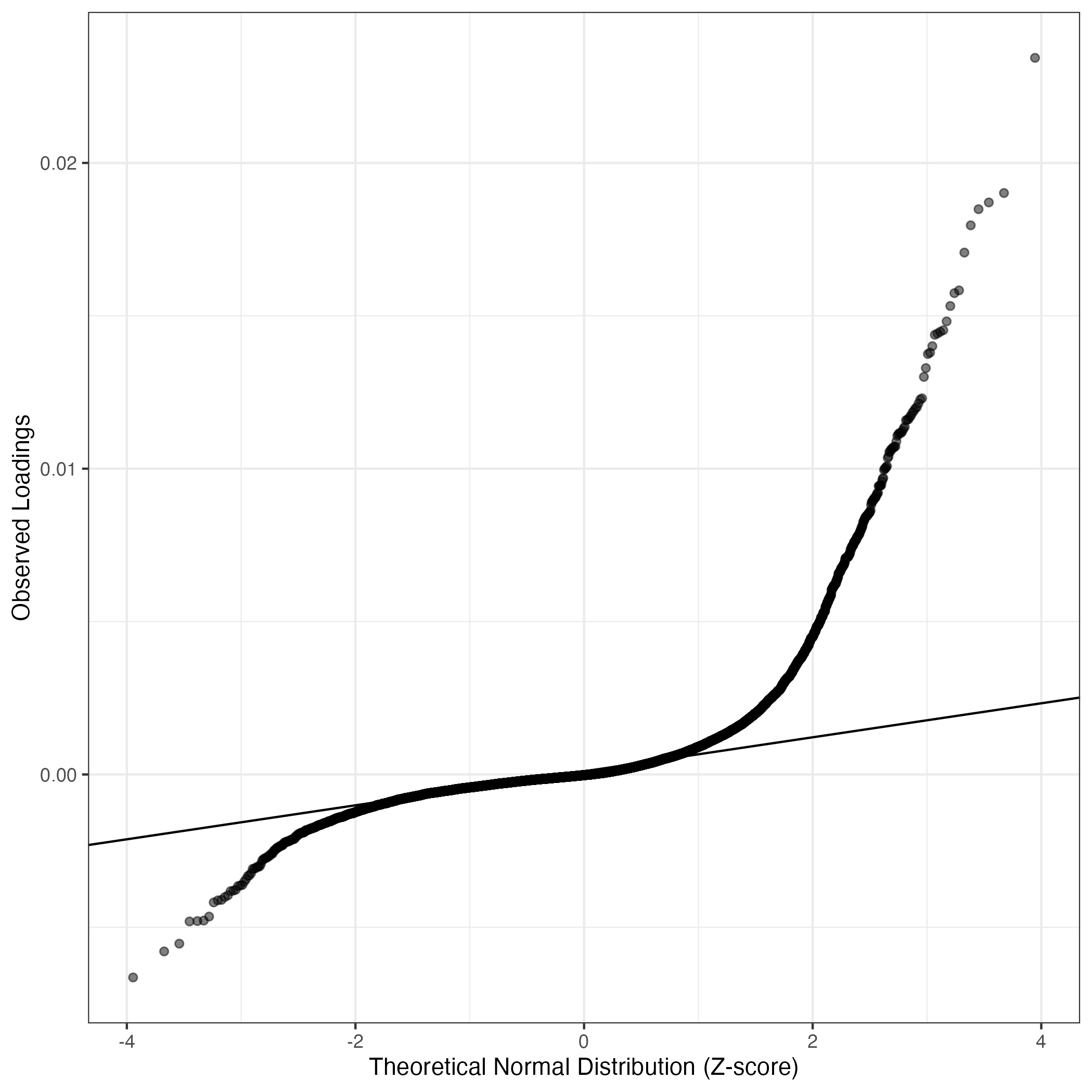 QQ Plot showing correlations with other GEPs in this dataset, calculated by Spearman correlation:
