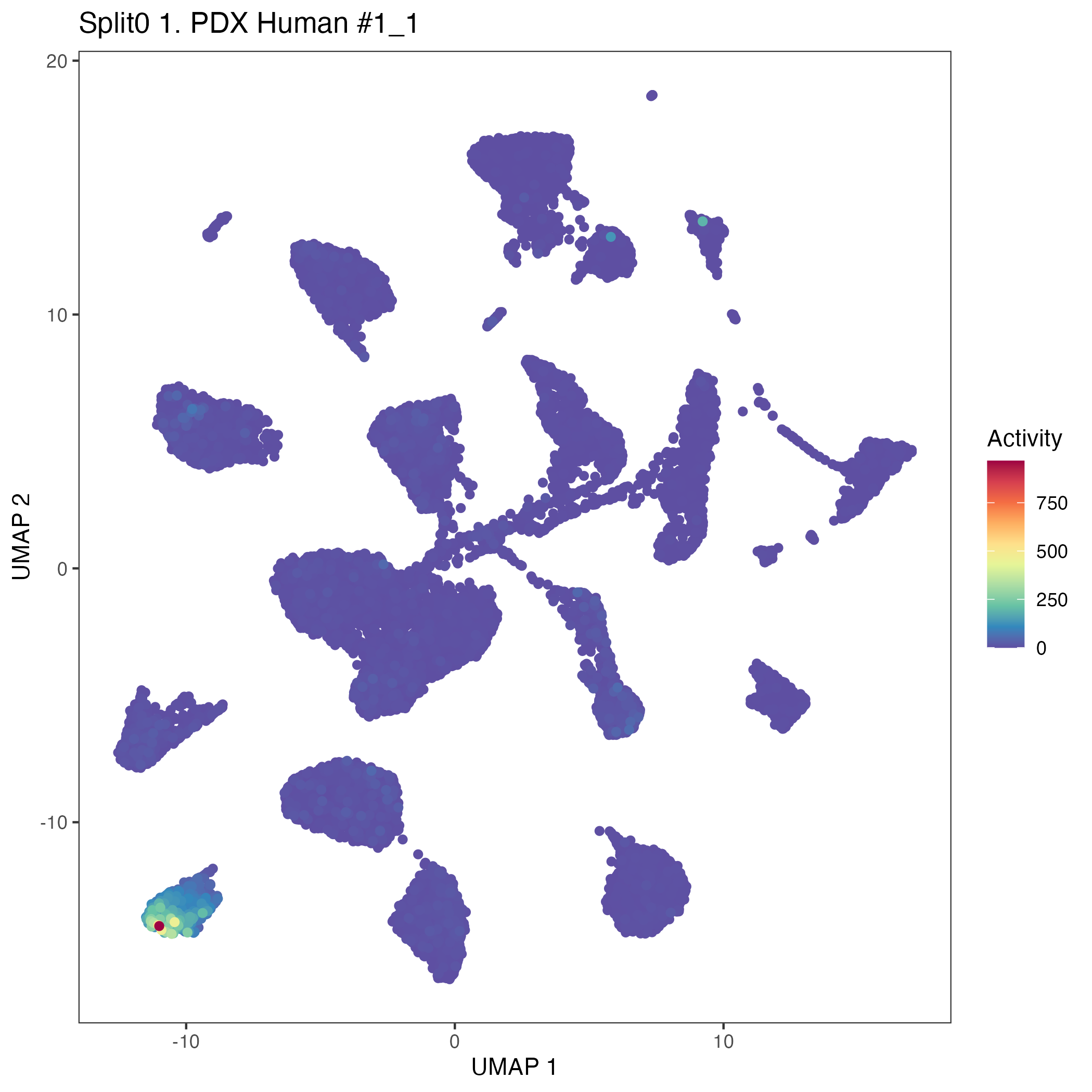 Erythroid: Early erythroid (curated markers) early erythroid cells which are committed to erythroid lineage cells: Wilcoxon ranksum test P-value for gene set overrepresentation: 9.61e-01 Mean rank of genes in gene set: 9953.33 Rank on gene expression program of genes in gene set: