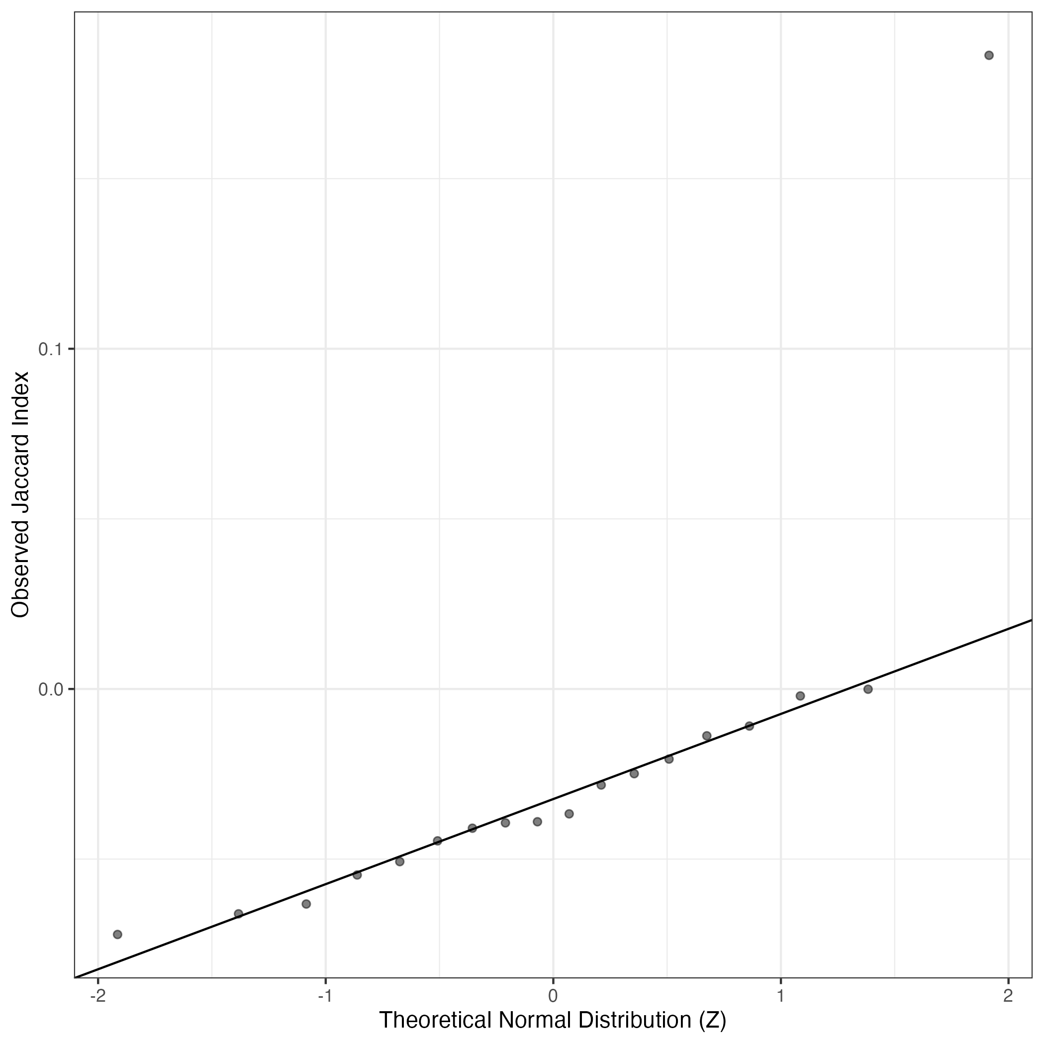 Wilcoxon ranksum test P-value for gene set overrepresentation: 9.97e-01