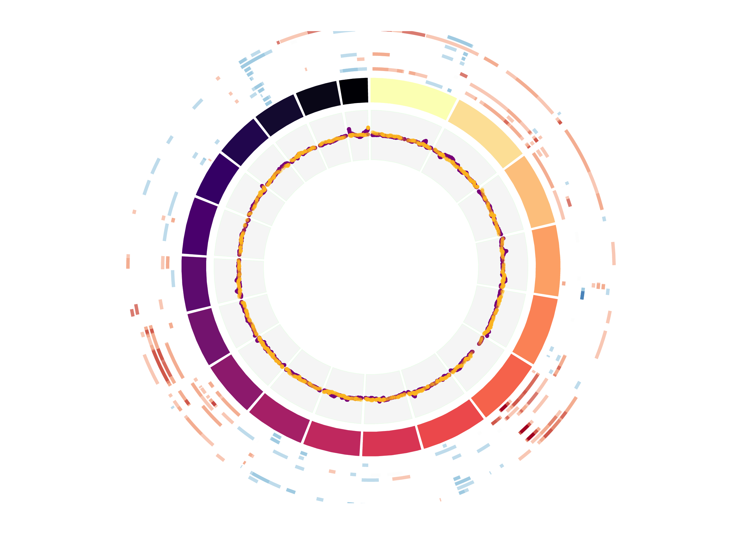 Outer tracks are putative CNV regions (gains = red, losses = blue) for each patient